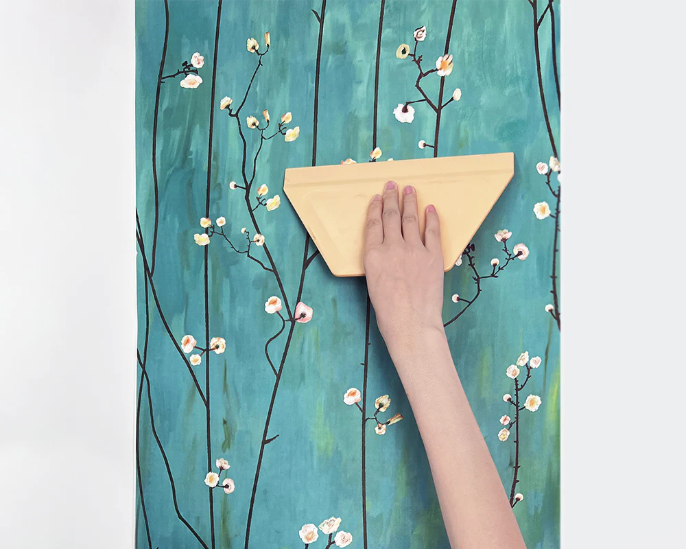 Utilisez la spatule à tapisser pour lisser le reste de la bande, de haut en bas, du milieu vers le bas et autour des bords. Après chaque lé de papier peint, essuyez la taloche pour enlever tout résidu de colle.