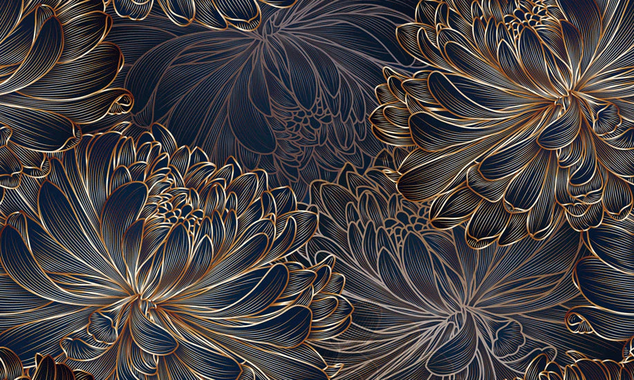 Ajoutez une touche de glamour à vos murs avec ce papier peint mural accrocheur. Les motifs envoûtants de chrysanthèmes aux accents dorés, complétés par les détails sur les pétales, en font un spectacle à voir. Décorez votre salon avec ce raffinement consommé qui rime avec luxe à l'état pur. Impressionnez vos invités avec ce chef-d'œuvre de décoration murale.