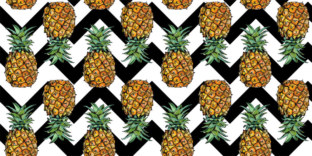 Ajoutez une ambiance tropicale à votre chambre à coucher avec ce papier peint mural Pineapple Waves. Ces vagues d'ananas à motifs de style kamikaze présentent une disposition amusante et colorée d'ananas, donnant à votre chambre un look estival. Le papier peint mural a une palette de couleurs naturelles de jaune et de vert au premier plan, et de vagues noires et blanches à l'arrière-plan, ce qui le rend idéal pour toute chambre à thème tropical. Cette conception est le moyen idéal de mettre en valeur votre architecture et de la rendre encore plus belle tout en créant un environnement relaxant pour vous et vos invités à tout moment de la journée.
