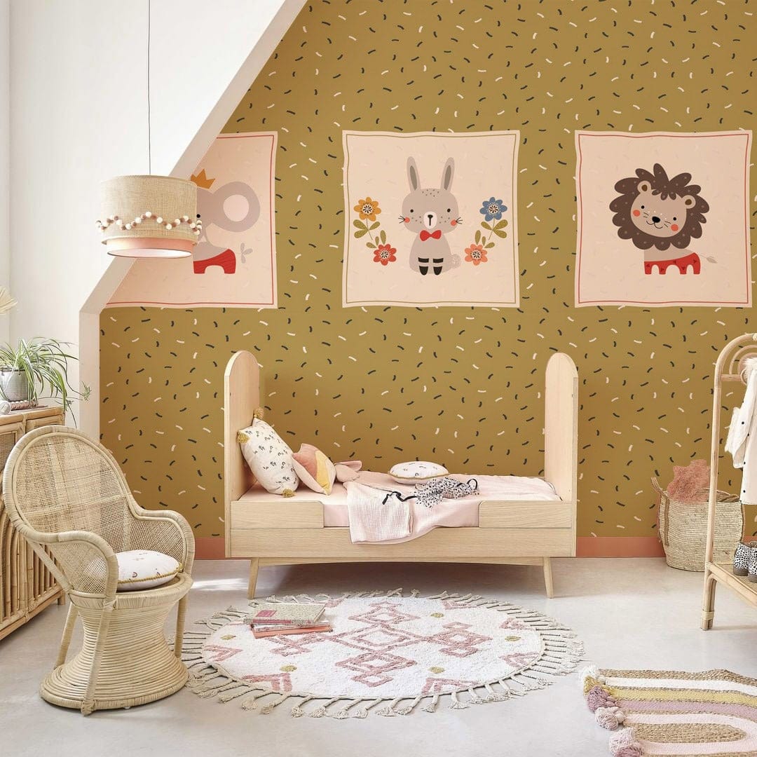 Apportez une ambiance spectaculaire à votre espace avec ce joli papier peint représentant un animal de bande dessinée. L'œuvre d'art créée dans des tons jaune-vert apporte simplicité et modernisme au design. Utilisez-le comme mur d'accent dans la chambre de votre tout-petit avec les meubles de votre choix car le papier peint est parfait pour s'associer à toutes les décorations de la maison.