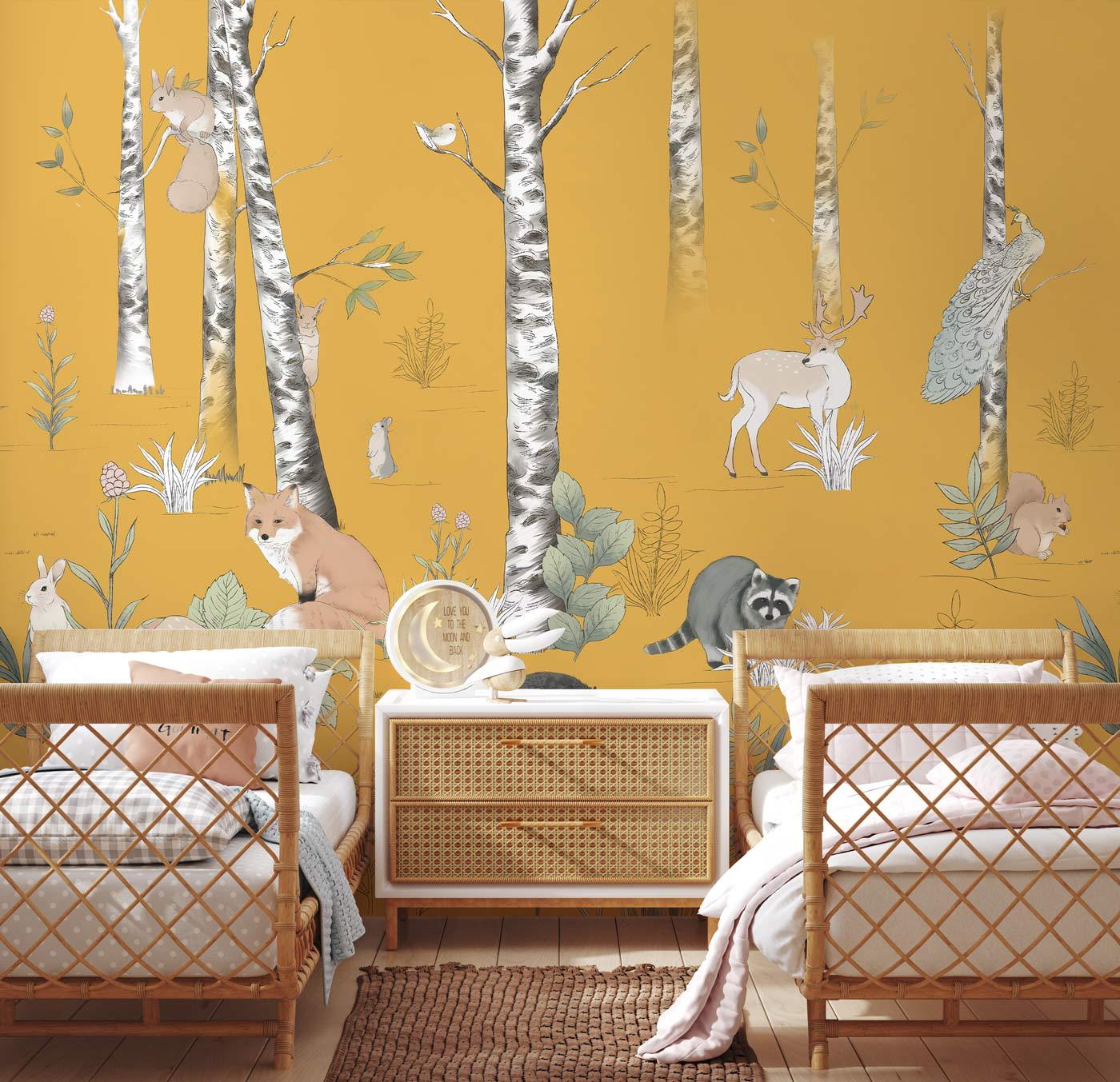 Apportez facilement un beau thème de forêt à une chambre ou une pépinière pour un enfant en papier peint peint à la main. Ce fond d'écran est un design peint à la main mettant en vedette certains des adorables animaux de la forêt, comme le cerf, le lapin, le renard et le raton laveur. Les petits seront étonnés par cette scène faunique comme mur de caractéristiques dans leur chambre. Faites ressortir le côté curieux de vos enfants avec une conception murale remplie de nature qu'ils chériront pendant qu'ils grandissent.