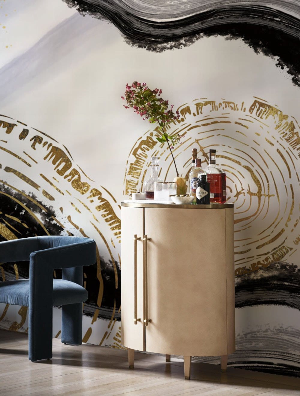 Créez un thème apaisant chez vous avec ce papier peint mural art déco noir et or neutre peint à la main, un design polyvalent qui fonctionnera avec une gamme de pièces et de styles. La conception créative de l'anneau annuel est parfaite pour exprimer votre style créatif tout en gardant un espace minimal. Pourquoi ne pas expérimenter avec ce papier peint de style abstrait dans votre salle de bain, votre chambre ou votre salon.