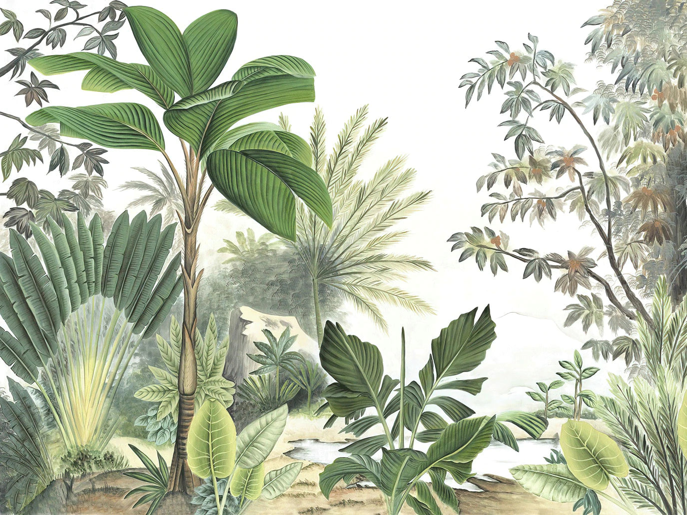Ajoutez une touche de vert à vos intérieurs avec ce papier peint de forêt peint à la main. Embrassez la nature avec ces arbres et plantes vertes. Papier peint parfait pour réduire votre stress et votre fatigue après une longue journée de travail ou d'étude. Idéal pour les chambres et les salons, assurez-vous de vous entourer d'ambiances chaleureuses naturelles.