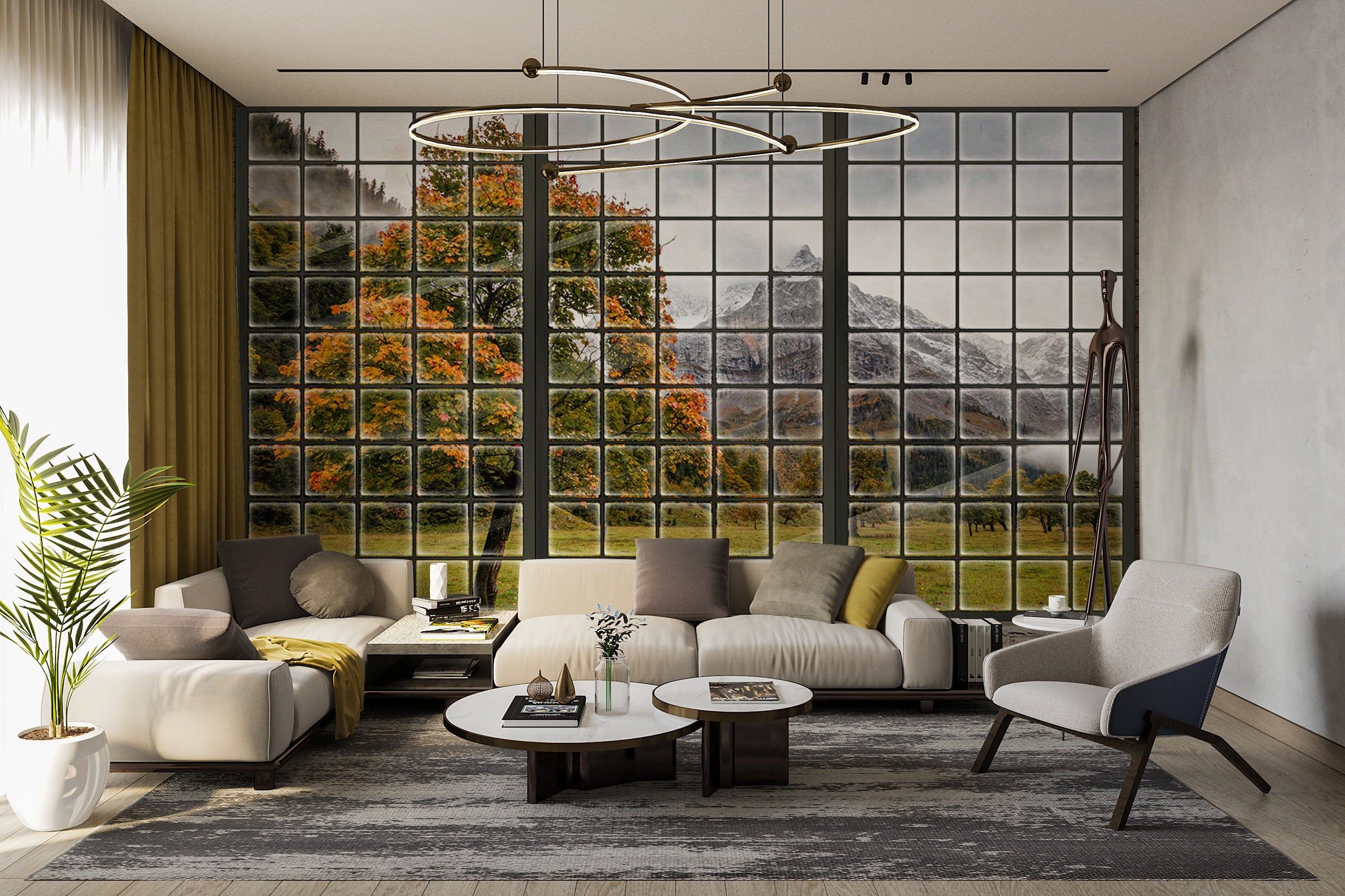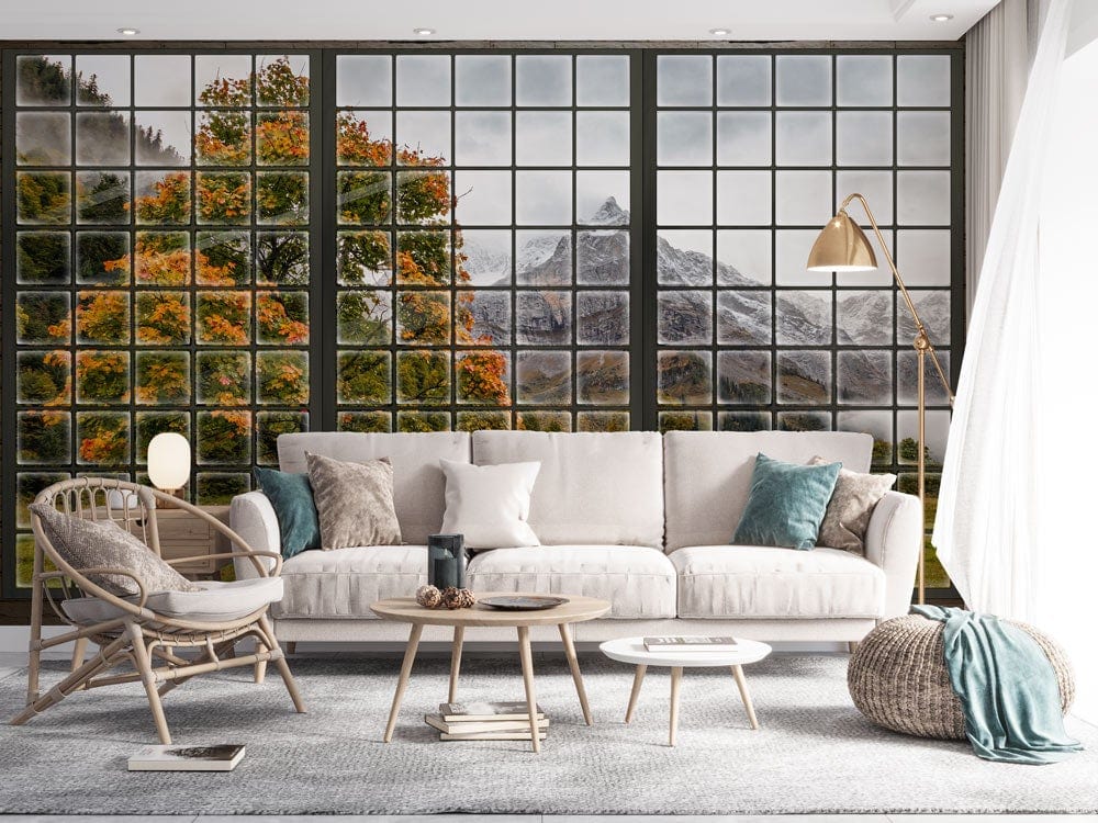 Amenez la nature à votre maison par la fenêtre et profitez des beaux arbres d'automne et du paysage de montagne avec cette peinture murale. La belle scène d'automne photoréaliste lui donne un effet 3D qui non seulement apporte la vie et la vitalité à votre chambre, mais rend également votre espace de chambre visuellement plus grand. Pourquoi ne pas le placer dans votre chambre, votre salon ou votre salle à manger pour un effet incroyable?