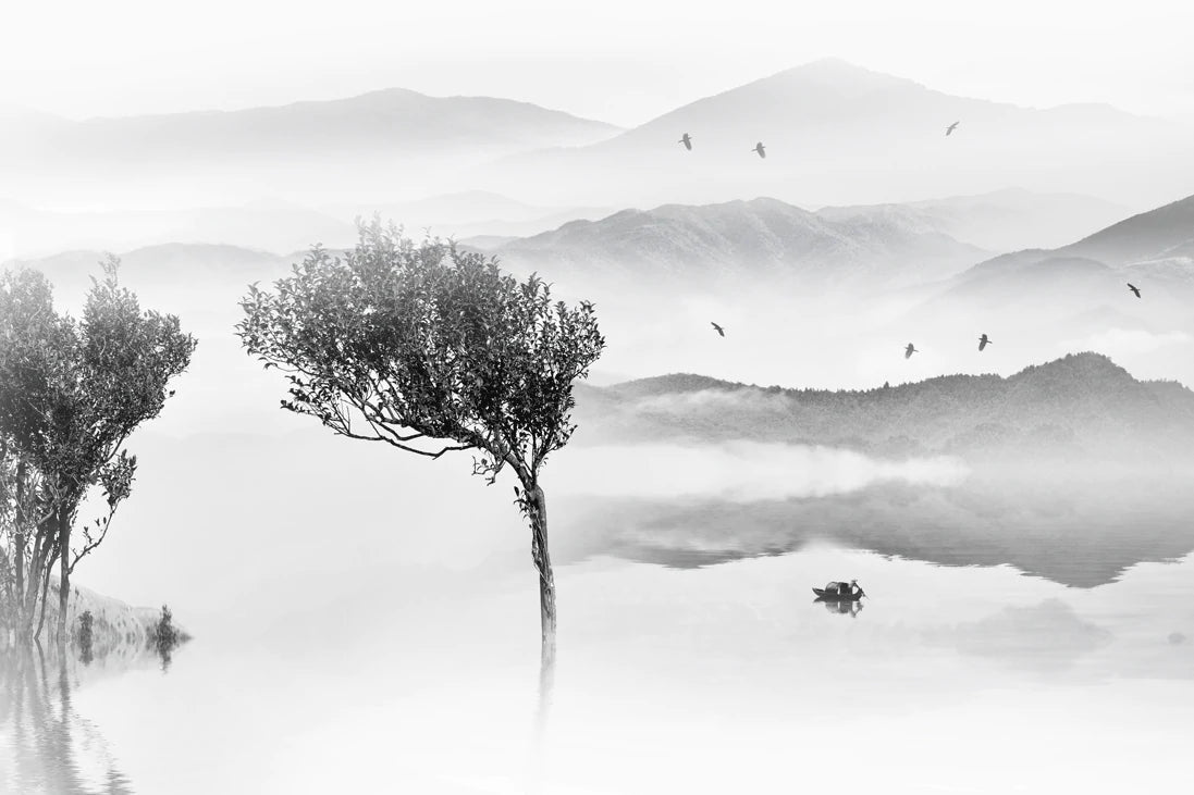 Donnez un nouveau souffle à votre maison avec ce magnifique papier peint d'arbres et d'oiseaux. Apportez une atmosphère paisible dans votre maison. Avec de superbes nuances de bateau, de forêt et d'oiseaux, ce magnifique papier peint de lac ajoutera une sensation de calme ainsi que de la couleur à votre maison. Nous adorons la façon dont les arbres se reflètent dans les eaux sereines du lac