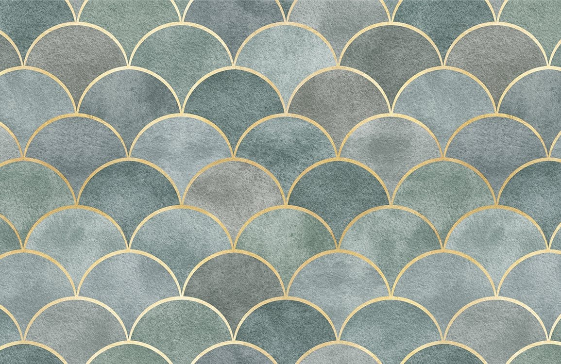 Qu'il s'agisse de bohème, glamour, vintage-éclectique ou fantaisiste, ce papier peint à motifs transparent créera un moment de style accrocheur. Un exemple parfait du mouvement tardif art déco mettant en vedette une riche couleur vibrante et un remplissage d'or entre les couches de carreaux de marbre. Fonctionne bien avec toute votre chambre, votre salon, votre salle à manger et votre cuisine.