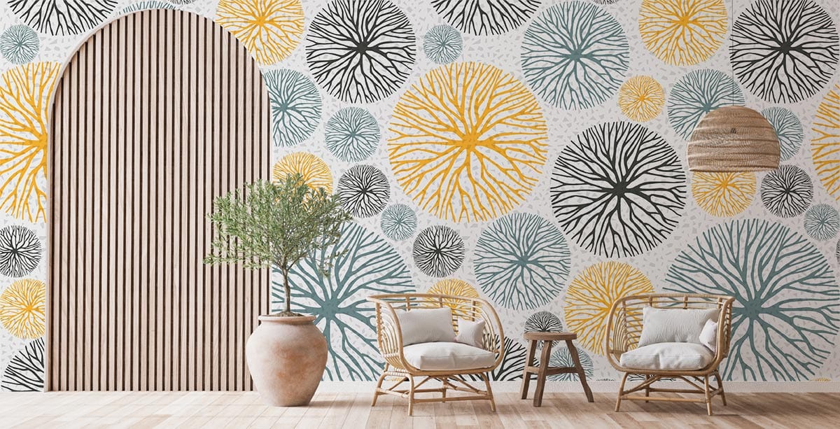 Un mythe très ancien dit que l'Athénie était l'arbre sacré de la déesse Athéna et Athènes. Il est plein de vie et de symbole très historique pour les Grecs. Ce Ever Wallpaper mural de Colorful Les coupes d'arbres Athenia rempliront votre place de vibrations très spéciales de puissance et d'élégance. Ce design est plein de vie et rendra votre place plus large et plus brillante. Stylez-le avec des décorations modernes et des rideaux en mousseline pour un look fluide plein de vie.