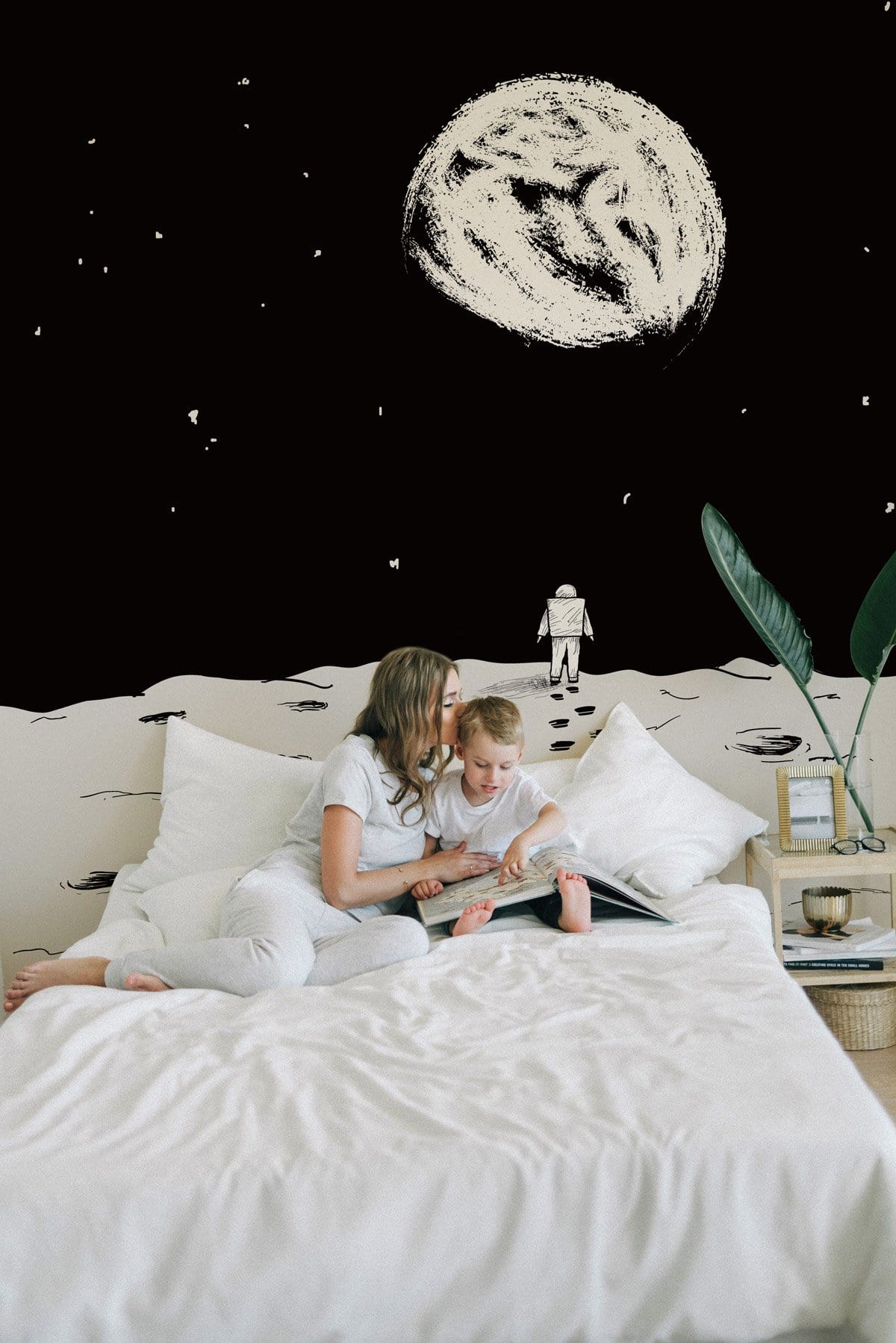 Imaginez que vous soyez un astronaute et que vous ayez la chance d'atterrir sur la lune, n'est-ce pas excitant ? Si vous voulez une fresque murale de papier peint de l'espace lunaire cool pour votre chambre, alors cet espace noir et blanc avec un design d'astronaute sera un choix parfait pour vous. Placez-le dans la chambre de votre enfant et emmenez-le dans une aventure spatiale loin de la Terre et stimulez son imagination à mesure qu'il grandit.