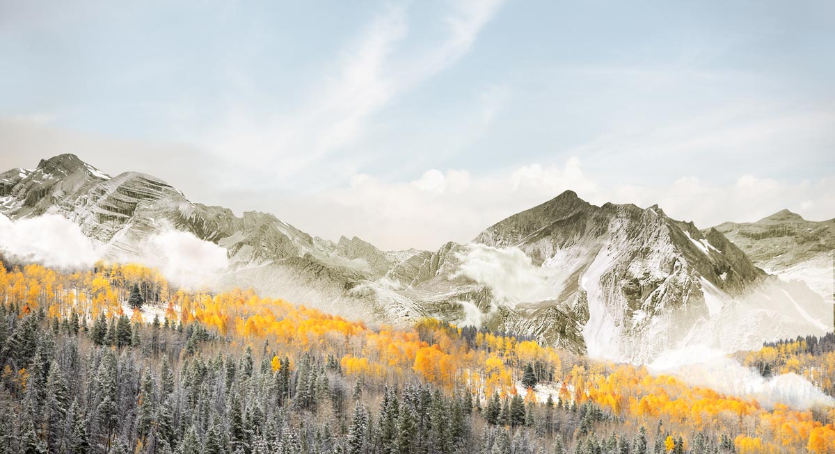 Décorez votre mur avec ce magnifique papier peint de montagne d'automne. Créez un mur caractéristique étonnant dans vos intérieurs avec cette magnifique fresque murale des majestueuses chaînes de montagnes inondées de ciel bleu pastel et des sommets rocheux enneigés. Associez-le à votre mobilier moderne de votre choix.