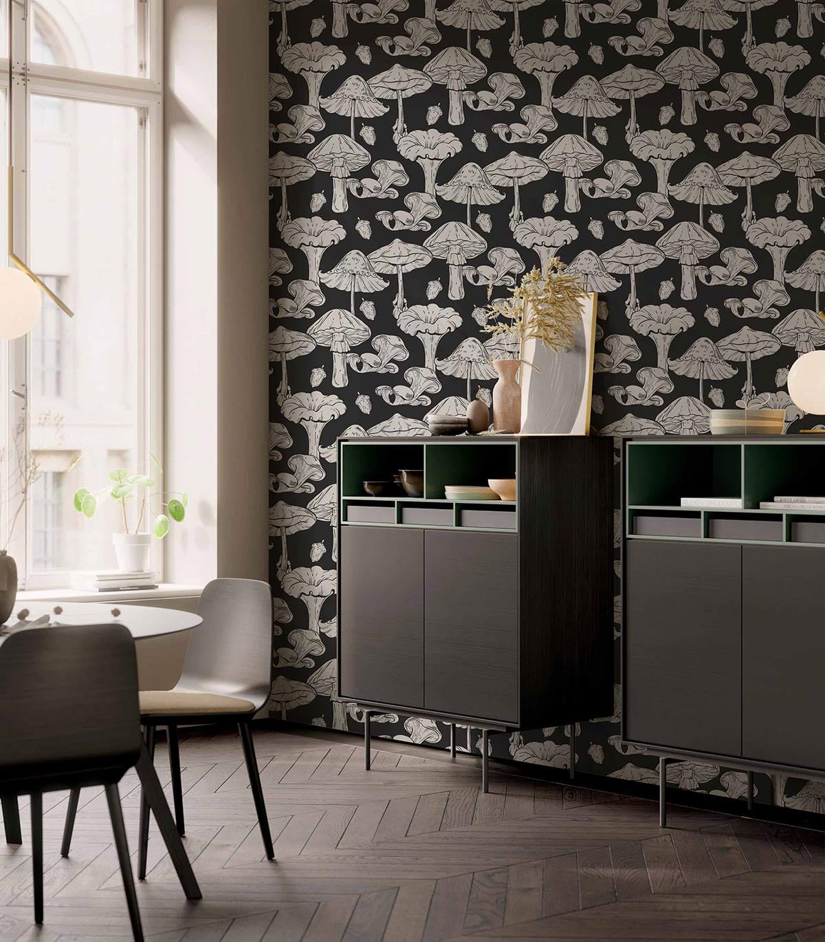 Balck Mushrooms Wallpaper Mural