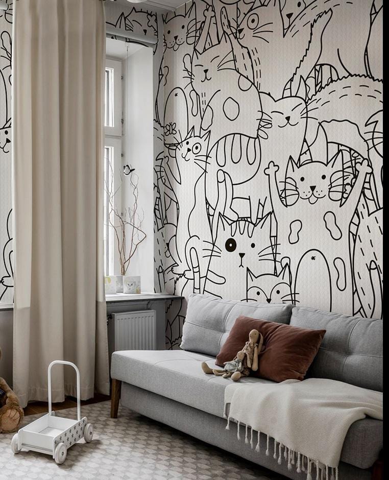 Apportez une ambiance spectaculaire à votre espace avec cette peinture murale de portrait de chat frappante. La nature abstraite de l'œuvre d'art apporte de la simplicité au design qui crée de jolis visages et corps de chat qui vous invitent à étudier la scène de plus près. Utilisez-le comme mur caractéristique dans votre salon avec les meubles de votre choix car les fonds blancs sont parfaits pour s'associer à toute la décoration de votre maison.