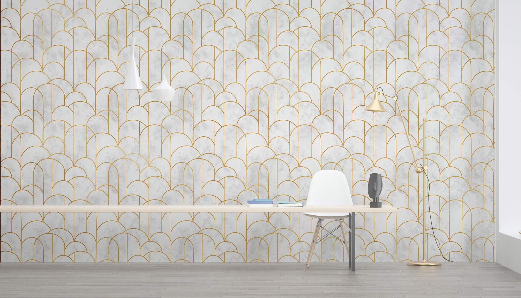 Créez un look merveilleusement dynamique et expressif dans votre intérieur avec le papier peint géométrique complexe. Les formes qui se chevauchent dans les lignes dorées avec un fond pastel blanc domineront l'attention dans n'importe quelle pièce, ce qui en fait un excellent choix pour un mur caractéristique. Cette murale transformera votre espace avec un minimum d'effort.