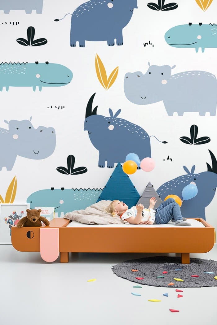 Votre enfant adorera cette jolie murale de papier peint animal. Les hippopotames et les crocodiles de dessins animés dans les couleurs bleu pastel voleront sûrement votre cœur et ajouteront plus enfantin et amusant à l'espace. Utilisez ce design pour réorganiser instantanément votre chambre Kidsā'āæ en quelques minutes et regardez votre enfant danser avec joie. Murale murale de chambre d'enfant parfaite qui fonctionne bien avec toutes sortes de meubles modernes et de décors.