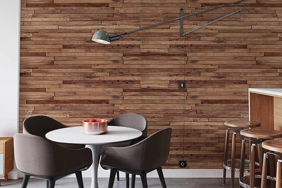Simple, mais pas si simple. Une synergie confortable de couleurs, de formes et de contrastes, le tout dans un papier peint mural. La peinture murale en papier peint de couleur marron utilise des blocs de couleur et de géométrie asymétriques avec une combinaison d'effet bois ainsi que des tons neutres et marron. Des lignes nettes adoucies par une palette de couleurs esthétiquement agréable. Ce papier peint mural s'accordera parfaitement à votre chambre, cuisine, salon et couloir.