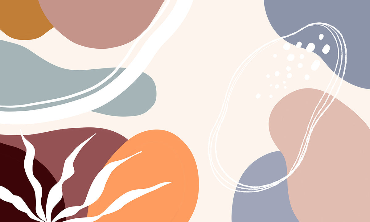 Cette conception de fond d'écran rassemble des formes de feuilles remplies, des griffonnages abstraits et des motifs créatifs pour créer un design abstrait, moderne et coloré. Avec des roses pastel, du blues poussiéreux, de l'orange, du blanc et plus encore, les tons de cette pièce aident à donner vie à la murale et vous aideront à ouvrir votre espace.