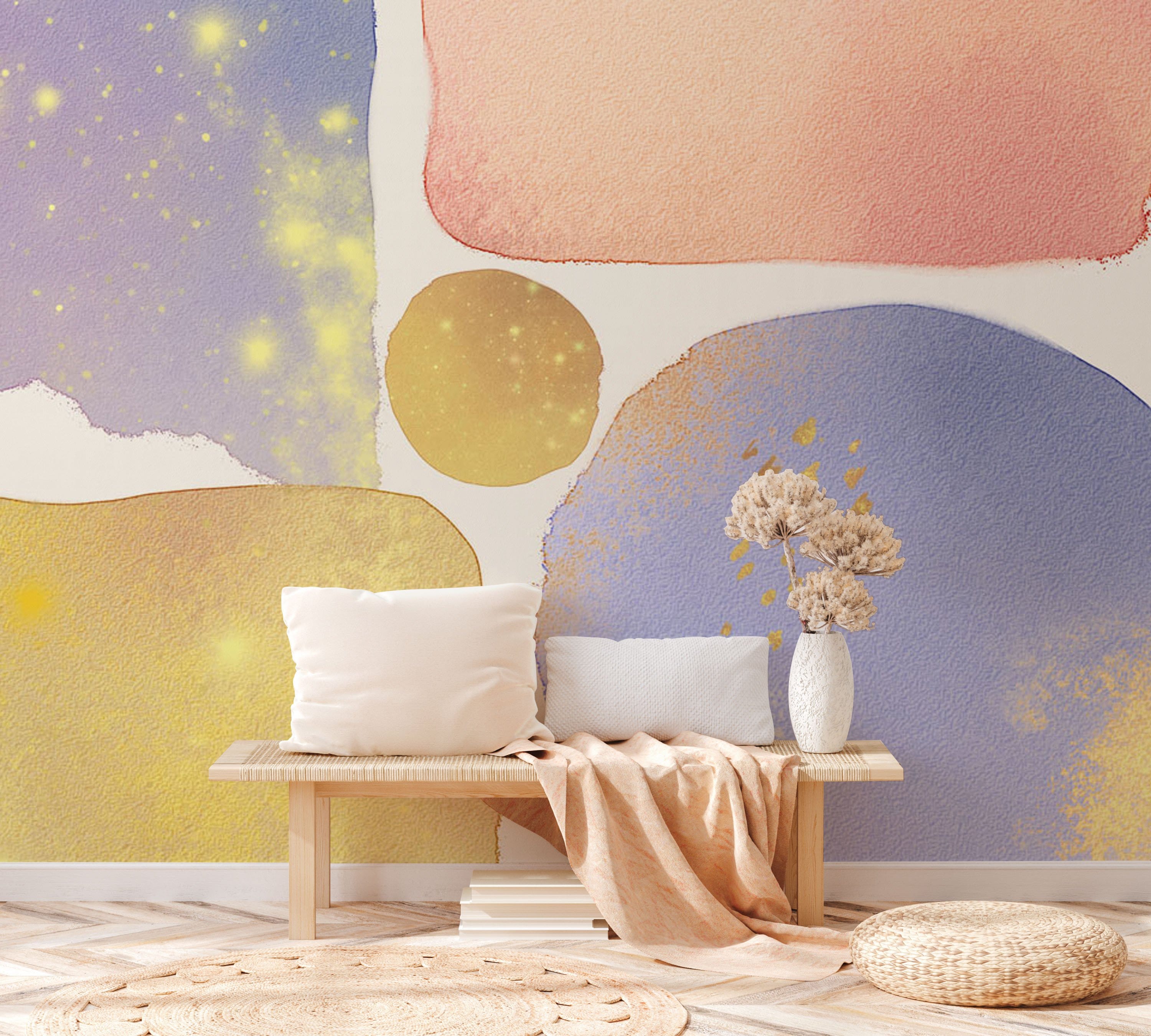 Créez un espace de rêve dans votre maison avec notre papier peint mural en blocs géométriques à l'aquarelle. Ce beau mélange créatif de couleurs dégradées à effet aquarelle ajoutera sûrement une touche de paix et de confort à votre maison. Il aura fière allure dans votre salle de bain, votre salle à manger et votre couloir. Cette décoration murale s'accordera également parfaitement avec vos meubles et toutes autres décorations d'intérieur.
