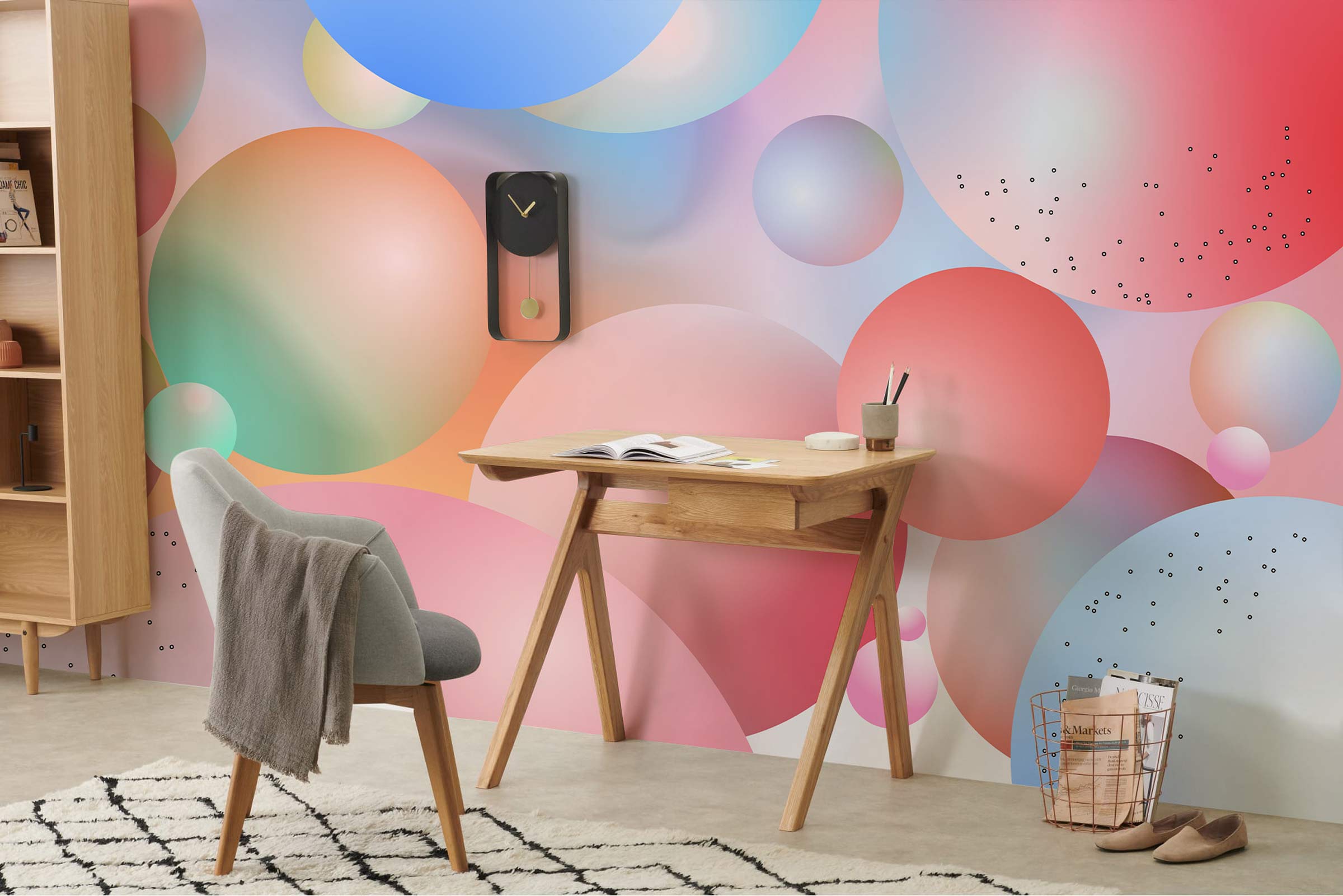 Créez un espace accrocheur et ultra-moderne avec notre peint peint de balles de gradient de couleur 3D. Ce fond d'écran créatif éclaboussera sûrement quelques couleurs et ajoutera un drame ludique à votre maison. Il sera incroyable dans votre chambre, votre salon et votre couloir. Cette murale murale correspondra également parfaitement à vos meubles de style moderne et à toute autre décoration intérieure.