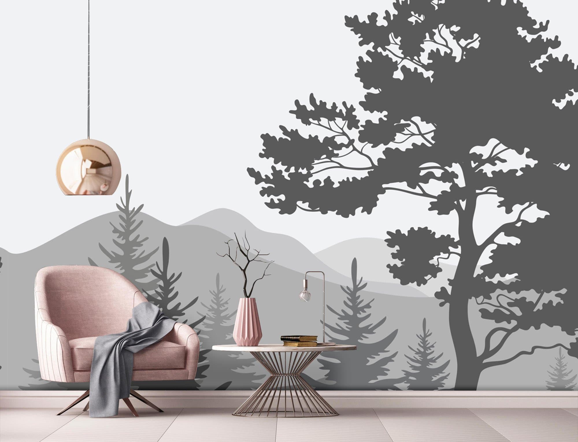 Respirez l'air frais de la montagne avec cette peinture murale de paysage de montagne brumeuse. Laissez-nous vous ramener à cette randonnée mémorable avec notre fresque murale de cette forêt brumeuse et de cette montagne. Pur, apaisant et serein, ce papier peint forêt transformera votre maison en un lieu de bonheur.
