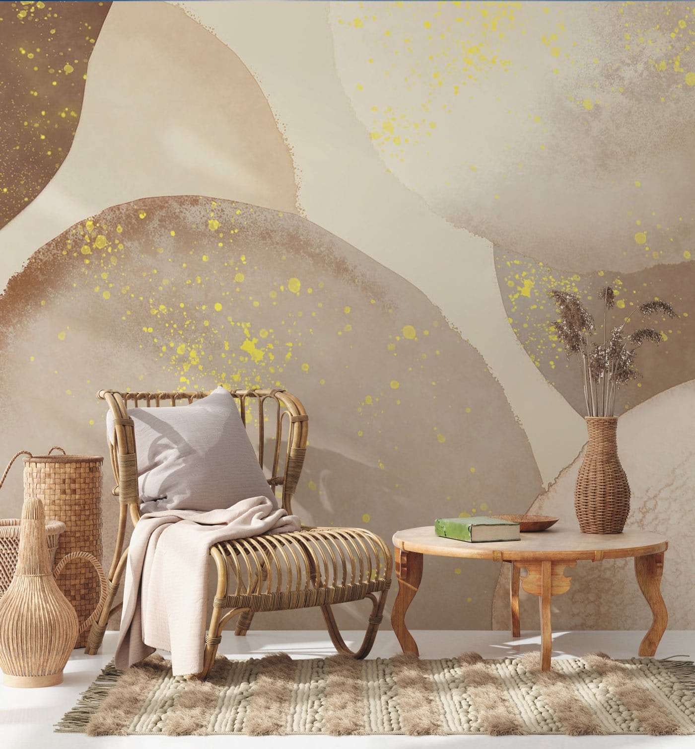 Si vous êtes à la recherche d'une superbe peinture murale en papier peint, cette peinture murale aquarelle marron est un choix parfait, surtout si vous aimez l'idée de créer un espace confortable et magique dans votre maison dans lequel vous pourrez vous détendre. Ce papier peint marron unique avec des paillettes dorées est une pièce de conversation garantie et les couleurs douces et les formes fascinantes de cette conception peuvent ajouter de la luminosité et du mystère à n'importe quelle pièce.