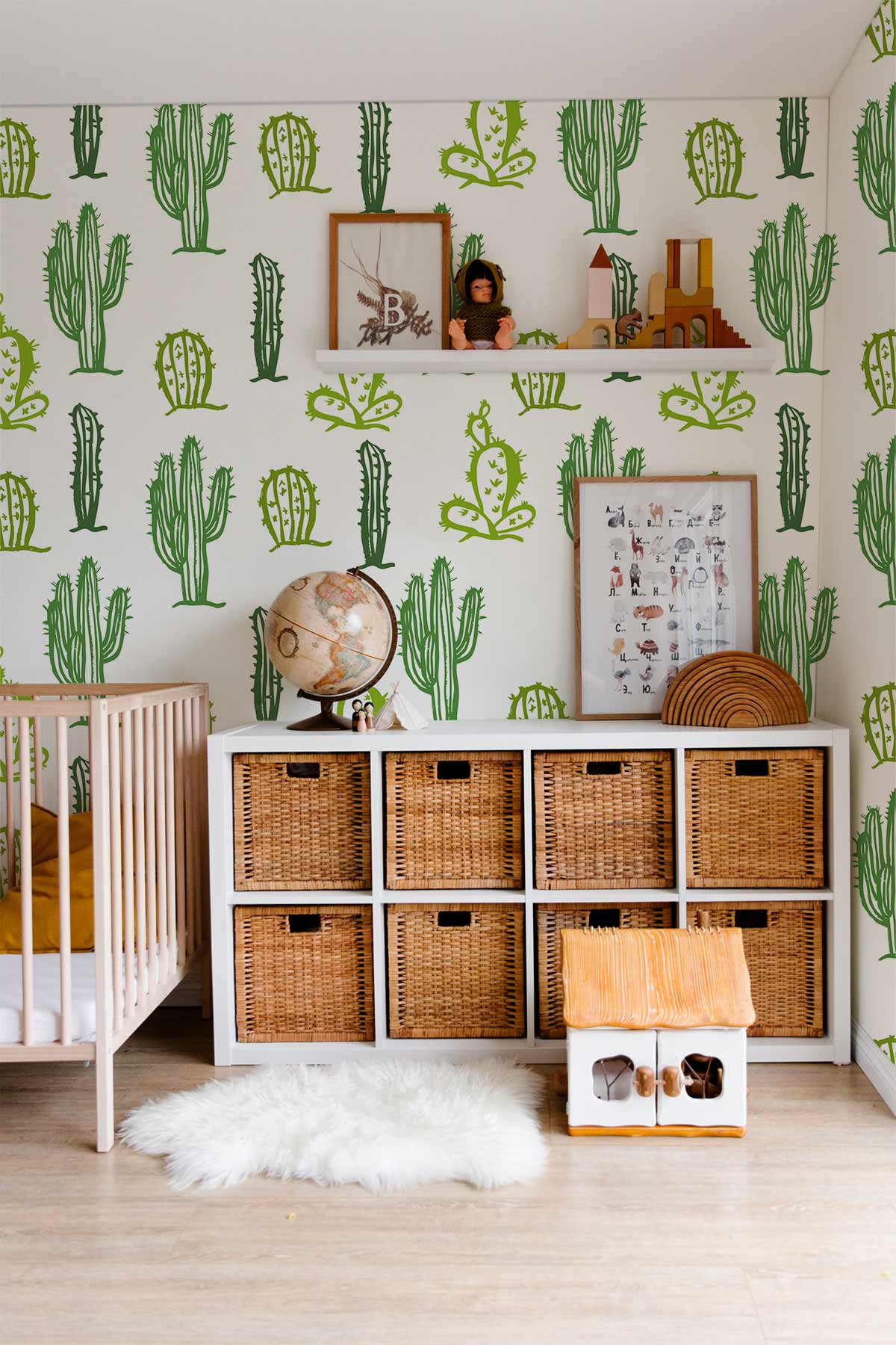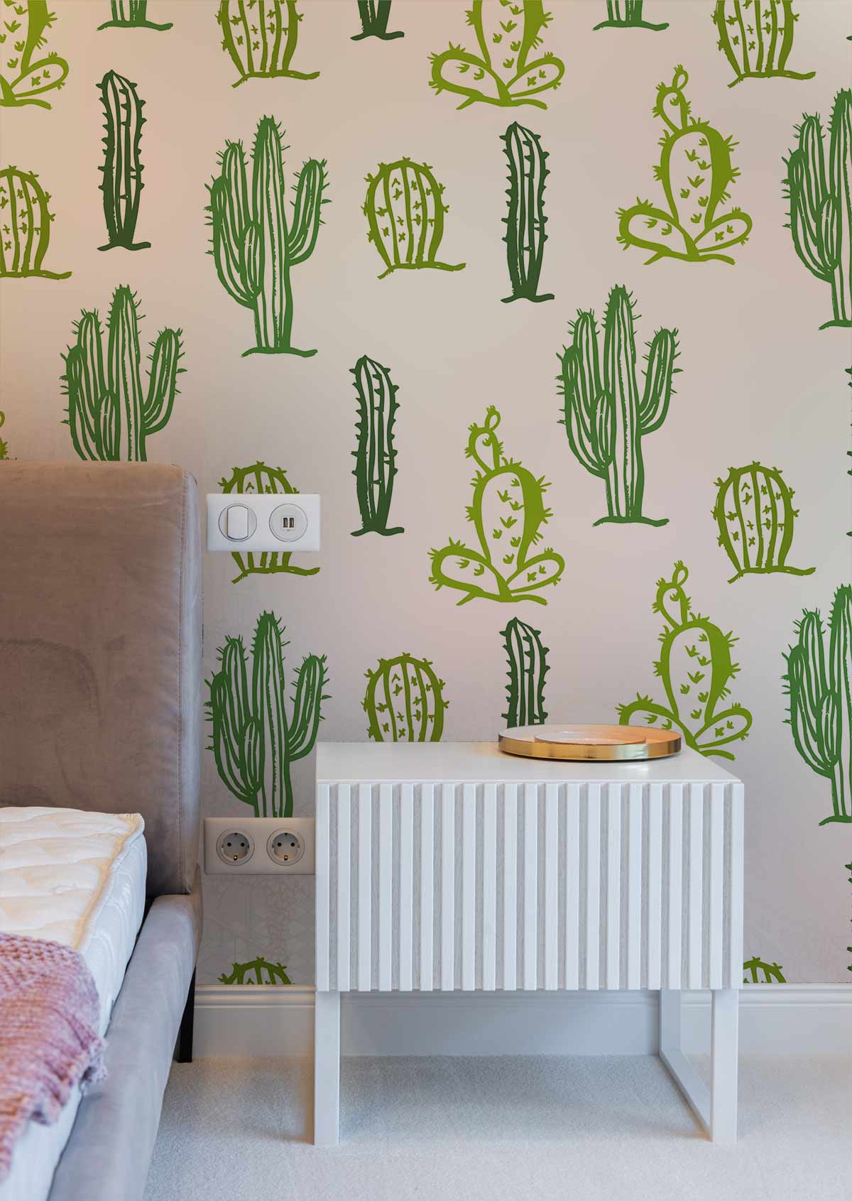 Il est plein d'épines mais est-ce si mignon et accrocheur, notre design de cactus ne vous fera pas de mal. Il vous remplira de la pièce et des vibrations positives. Un papier peint mural cactus répété avec trois nuances de vert différentes pour différents types de cactus qui décorer votre chambre avec un design brillant qui montrera la pièce plus large et plus grande. Une chambre lumineuse est si détendue et soignée, donc nous sommes là pour faire ça sur la vraie vie. Style la peinture murale avec des rideaux en mousseline blanc cassé pour un style moderne plus accrocheur. Utilisez-le dans votre KidsāRoom et ne manquez pas de leur dire des faits et des conseils amusants sur le cactus et laissez-les compter le cactus dans la murale et bénéficiant des peintures murales illustratives de notre collection pour améliorer votre gamin Compétences.