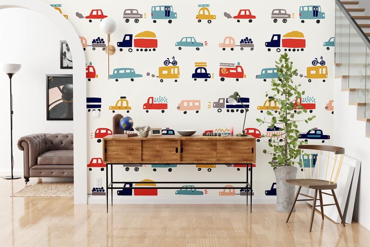 faites votre Attaché à leurs chambres et donnez-leur une nouvelle décoration hors de l'ordinaire avec notre nouvelle collection de fonds d'écran pour enfants, nous présentons des camions peint mural pour ceux garçons et les enfants qui aiment jouer avec les voitures et aimer les voitures et les camions. Cette conception est l'une de nos conceptions illustratives qui contient différents types de véhicules. Expliquez et aidez à améliorer vos connaissances Kidsā €? Et faites-leur connaître le nom de chaque véhicule et racontez-leur des faits et des histoires sur le travail que tout le monde implique. Et laissez-les imaginer ce qu'ils veulent être à l'avenir. Ce design simple est tellement préfet pour vos garçons €? Room avec des rideaux en mousseline blanc cassé et des tapis noirs ou bleu foncé pour un joli contraste et pour les garçons non ennuyeux €? Room.