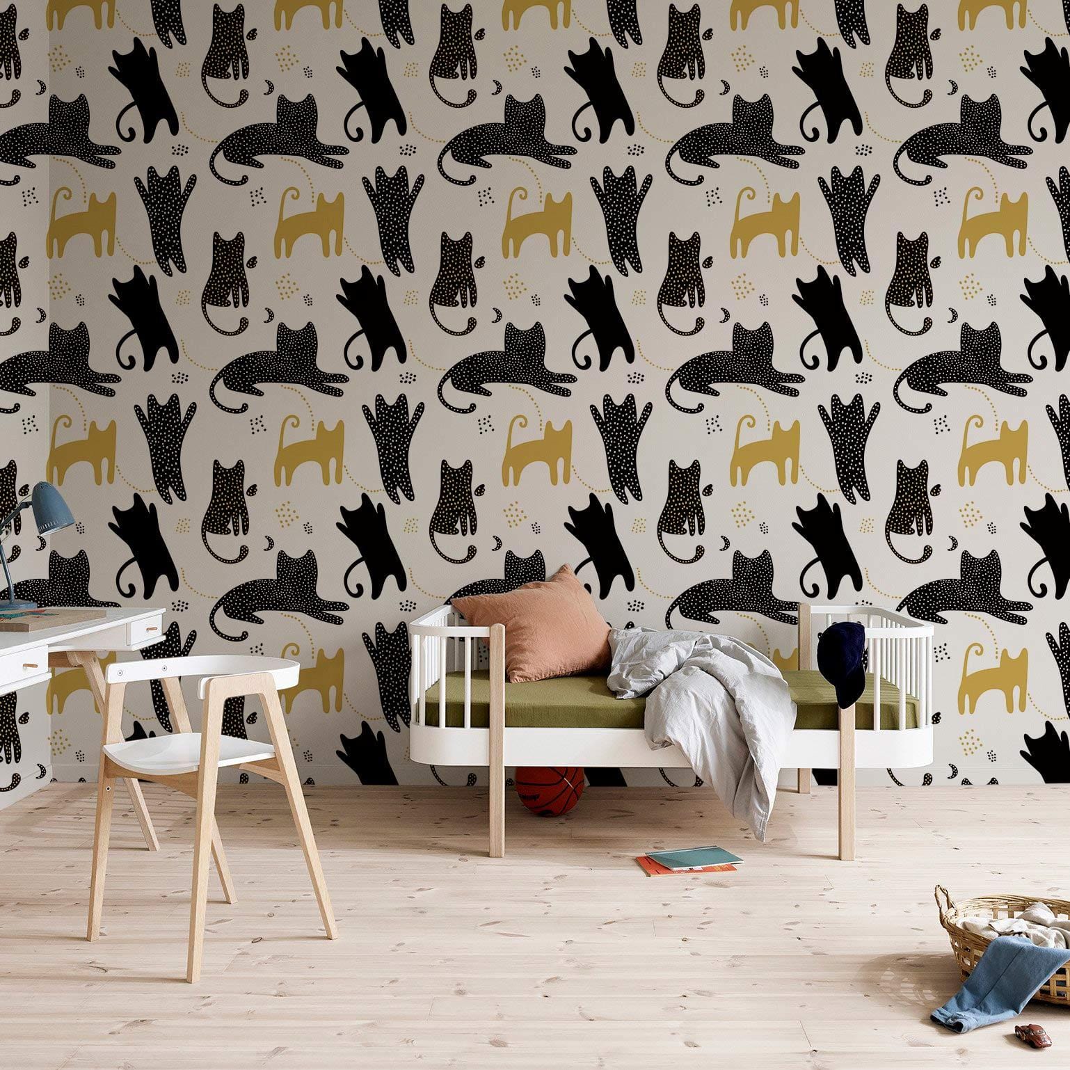 Jetez un œil à ces peintures murales de papier peint mignons. Ces adorables chats répétés dans la murale de mur de motif noir, gris foncé et brun garantissent de voler votre cœur. Ever Wallpaper idéal qui convient à toutes vos chambres ou chambres pour enfants / crèches. Placez cette murale murale de chat à vous ou à la chambre de vos enfants et profitez du bonheur et de la joie qu'il vous apporte.