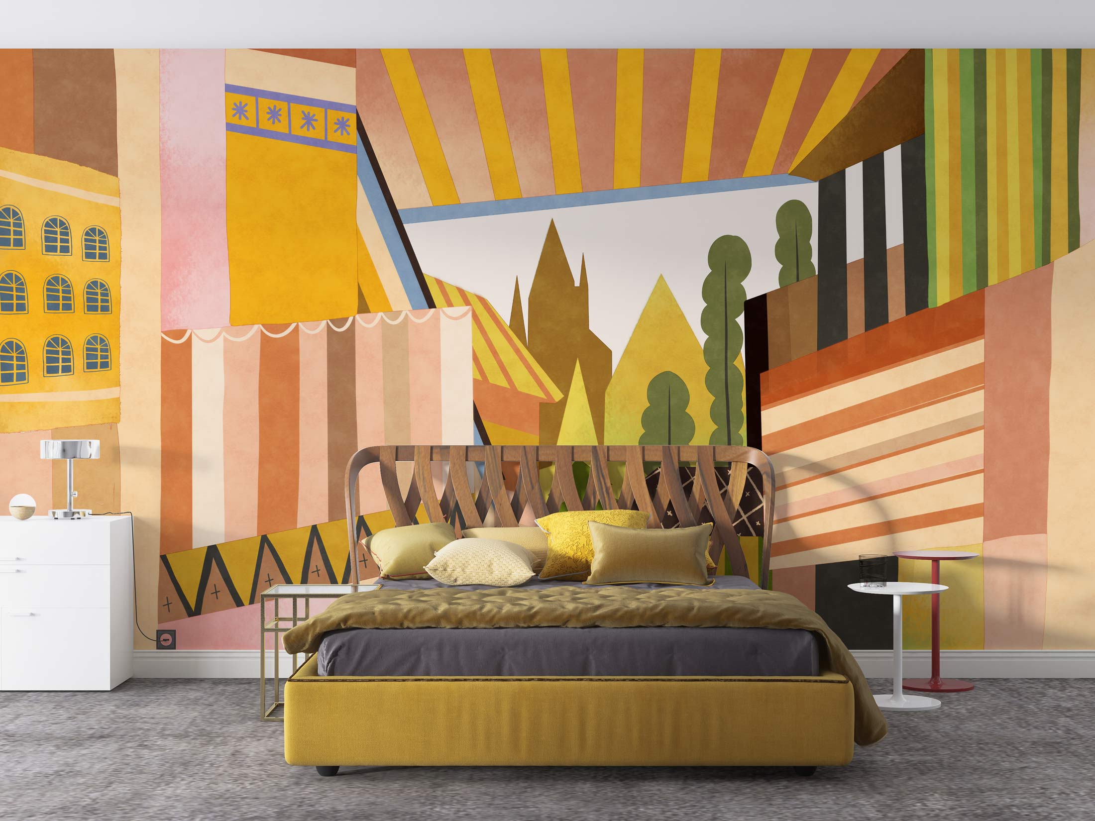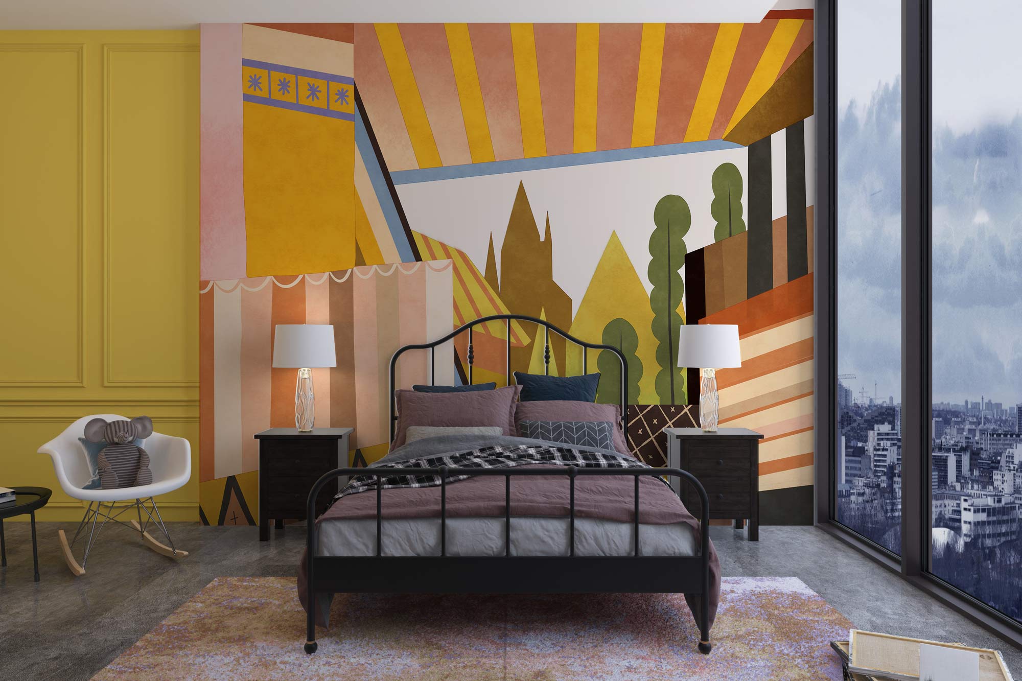 Réorganisez vos murs avec cette murale de papier peint coloré. Cette conception de maisons, de bâtiments et d'arbres de différentes couleurs et de style de dessin animé abstrait réjouira vos yeux fatigués instantanément. Alors allez-y et mettez en évidence un mur dans la chambre de votre enfant avec ce design mignon qui met en valeur votre inclination vers la nature en abondance. Associez-le à tous les meubles de couleur vive dans votre chambre pour enfants.