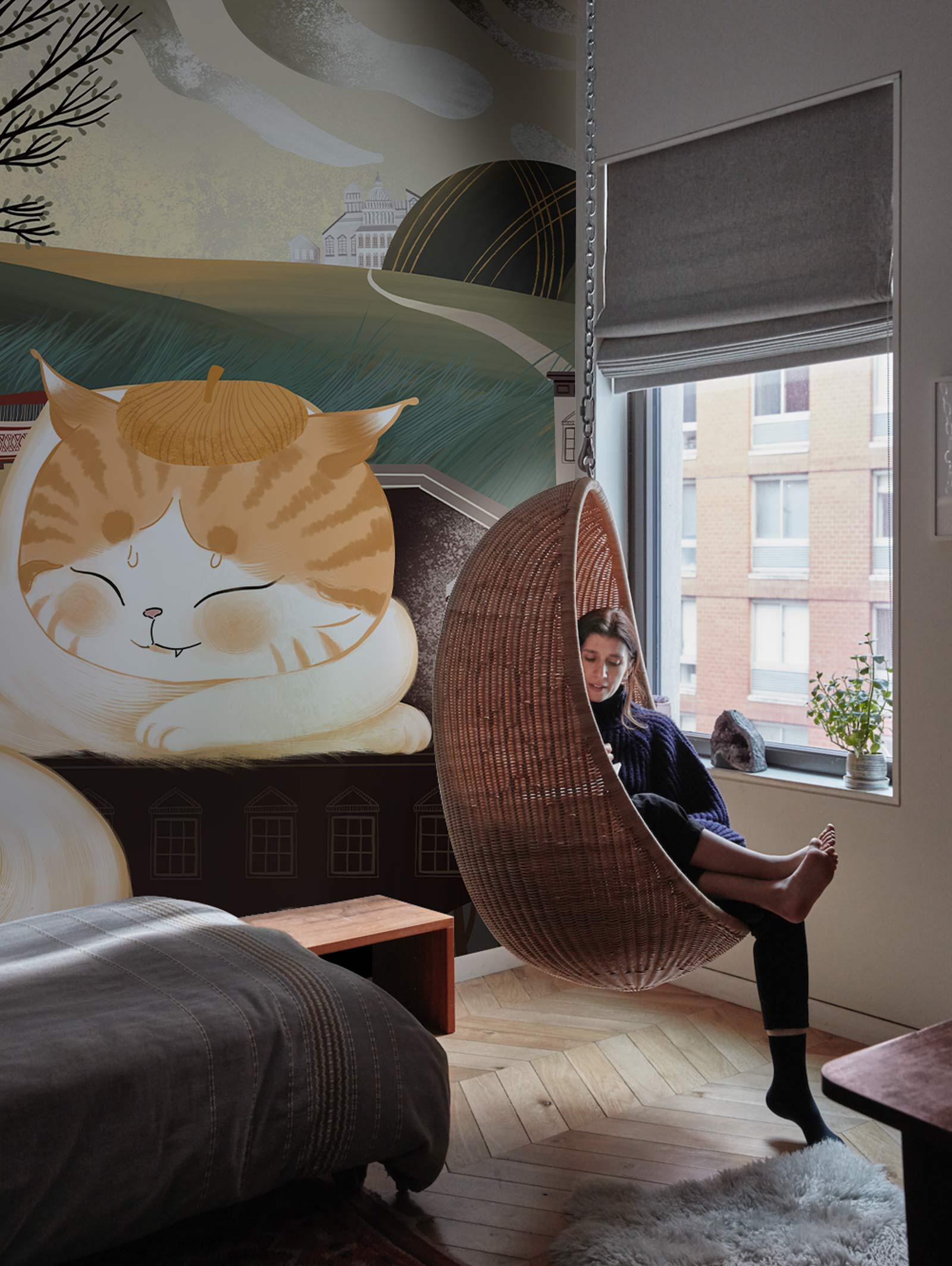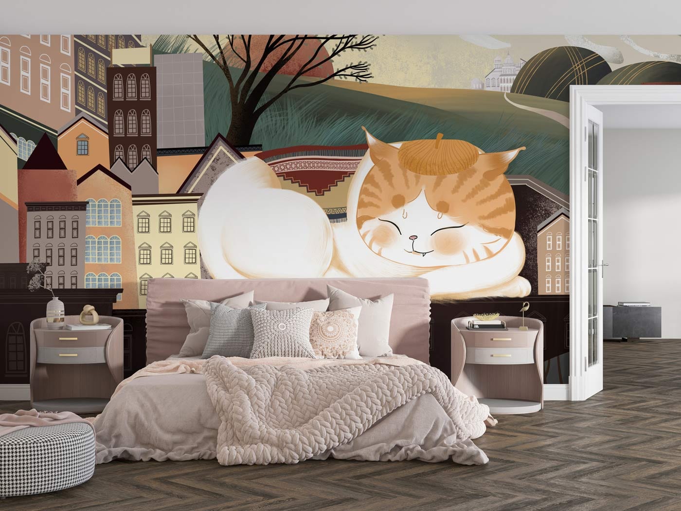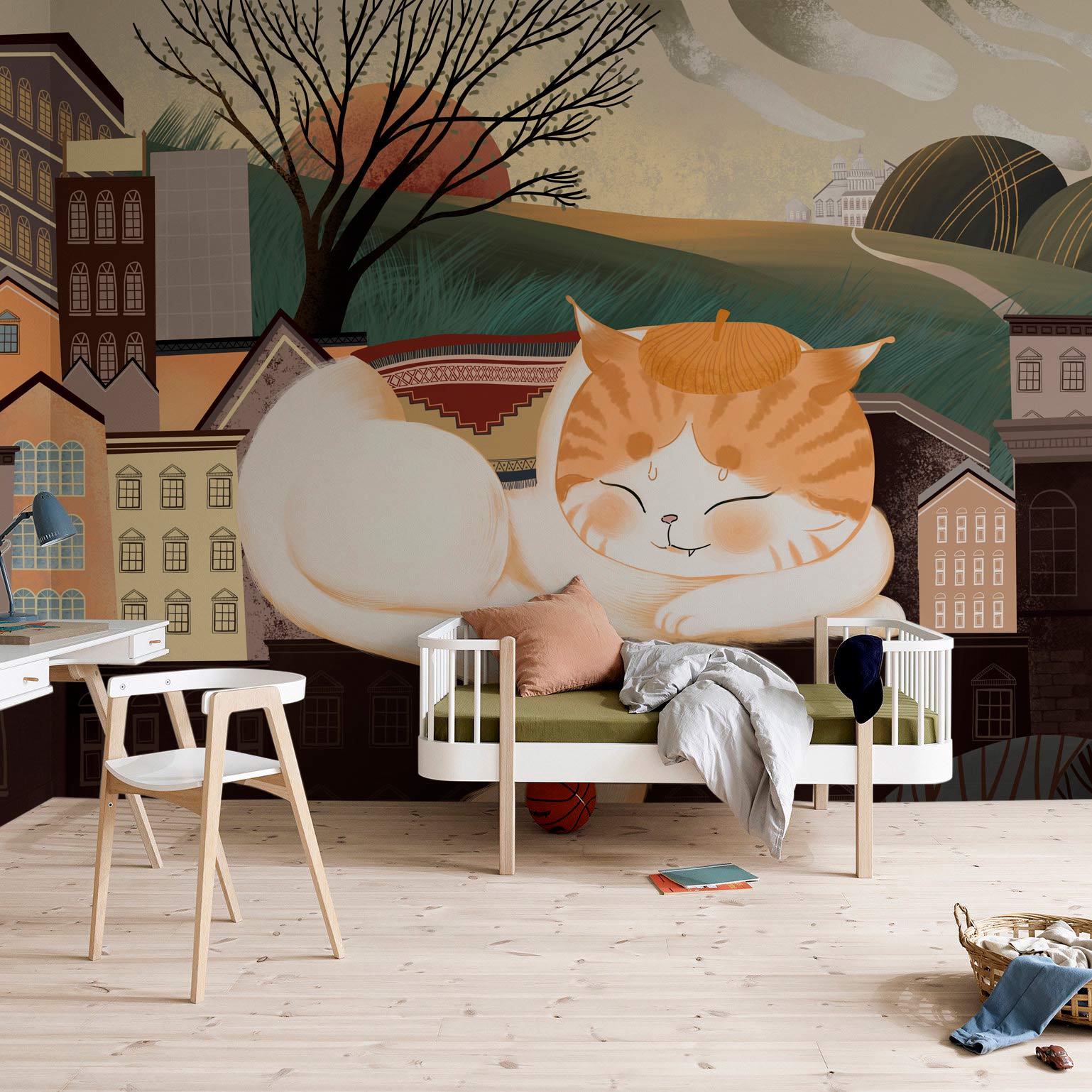 Jetez un œil à ce joli chat de dessin animé faisant une sieste. Peint avec des couleurs cooufules qui seront parfaites pour la chambre ou la salle de jeux de votre enfant. Placez cet adorable papier peint de chat sur le mur qui est à côté de leur lit et profitez du sentiment coloré et vivant qu'il vous apporte.