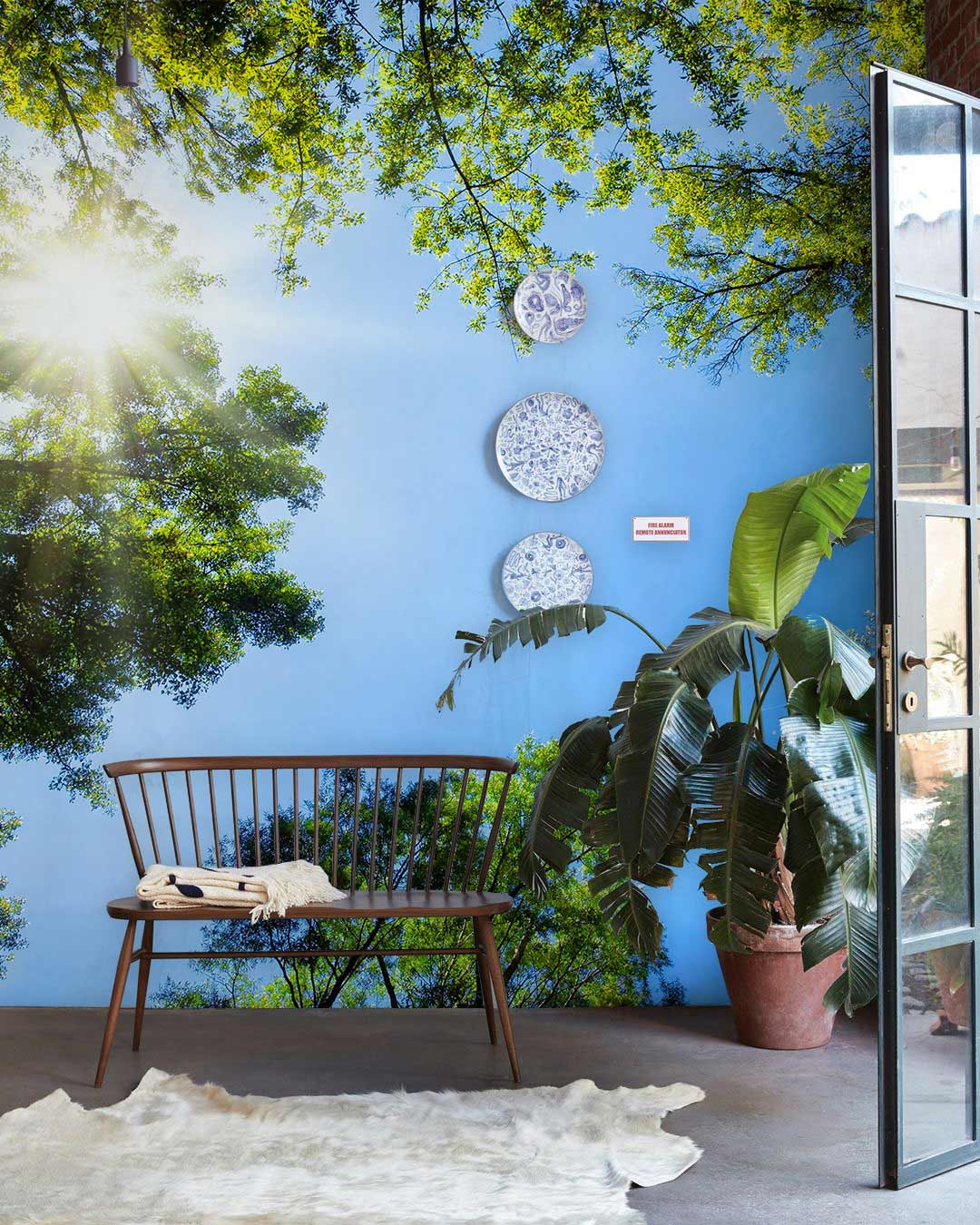 Il y a des moments où vous voulez être seul au fond des bois - un endroit loin de tout. Le papier peint mural Sky Through Forest vous permet de vous évader dans ce paradis forestier sur n'importe quel mur de votre maison. Avec un ciel doux et serein sur un fond de forêt, ce papier peint mural va rafraîchir votre environnement. La texture subtile des feuilles et des branches qui traversent le papier peint, ainsi que la teinte verte, créent un environnement somptueux et tranquille pour vous et vos invités.