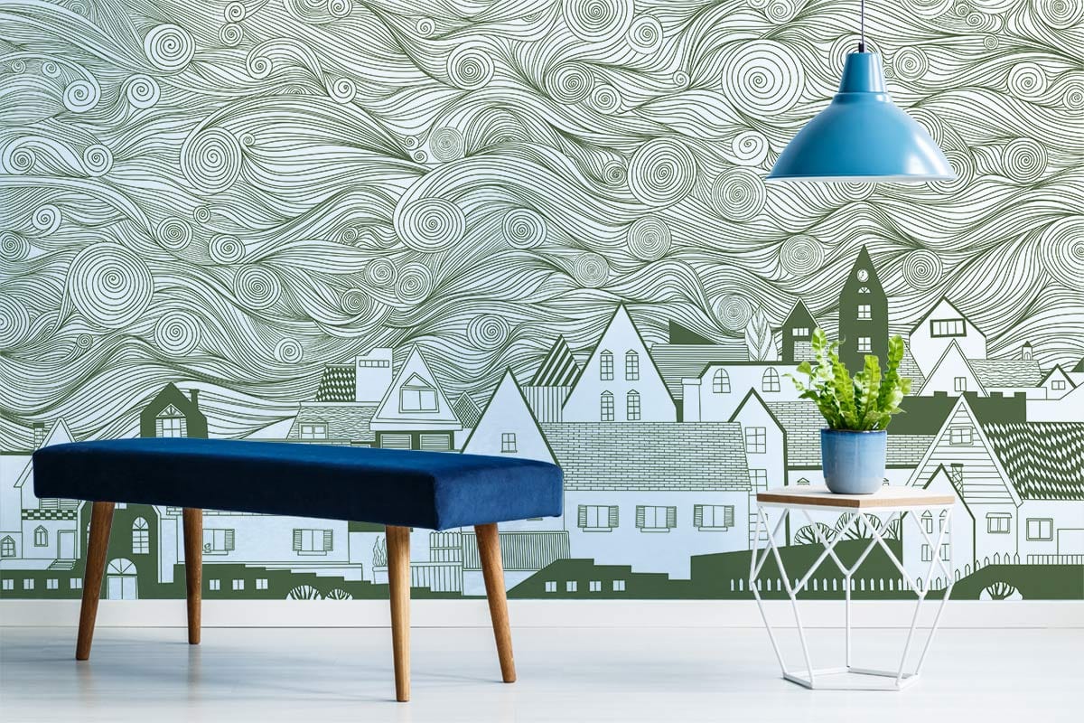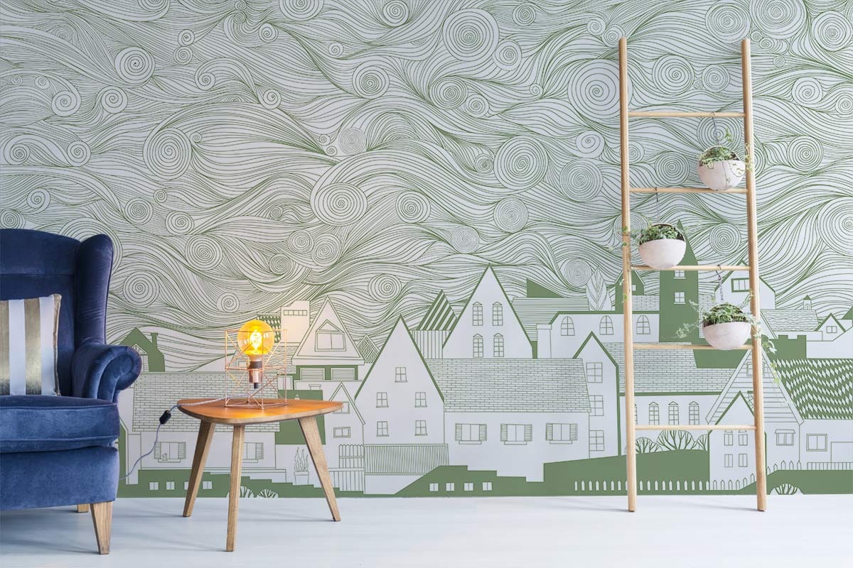 Monte à l'échelle de votre espace avec ce ciel nuageux créatif et la construction de papier peint de paysage. La belle murale murale dessinée à la main utilisant une technique de peinture habile et sophistiquée apportera à votre mur un tout nouveau look. Utilisez-le dans votre chambre, salle de bain, salon ou salle à manger, et fonctionne mieux avec des meubles de style en bois pour donner un nouveau look à votre espace.