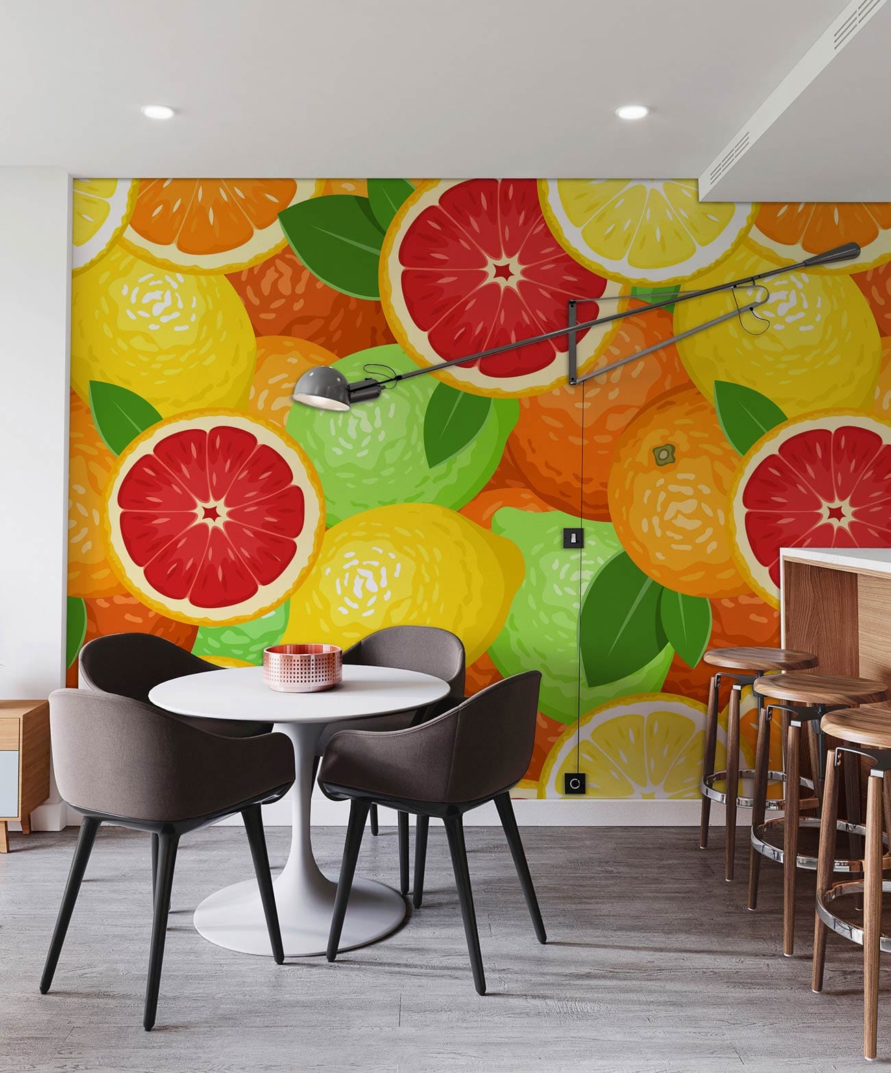 Découvrez ce papier peint mural créatif Colorful Lemons au design élégant et attrayant. Le motif de citrons colorés crée un intérêt et un mouvement rythmique, se mélangeant bien avec le reste de l'espace. Avec la saveur vive et stimulante d'un papier peint à motifs de citrons, vous pouvez l'utiliser comme un accent dans une pièce monochrome ou mélanger et associer différents motifs pour créer de l'intérêt. La disposition colorée est sûre d'égayer votre maison et de lui donner un aspect amusant.