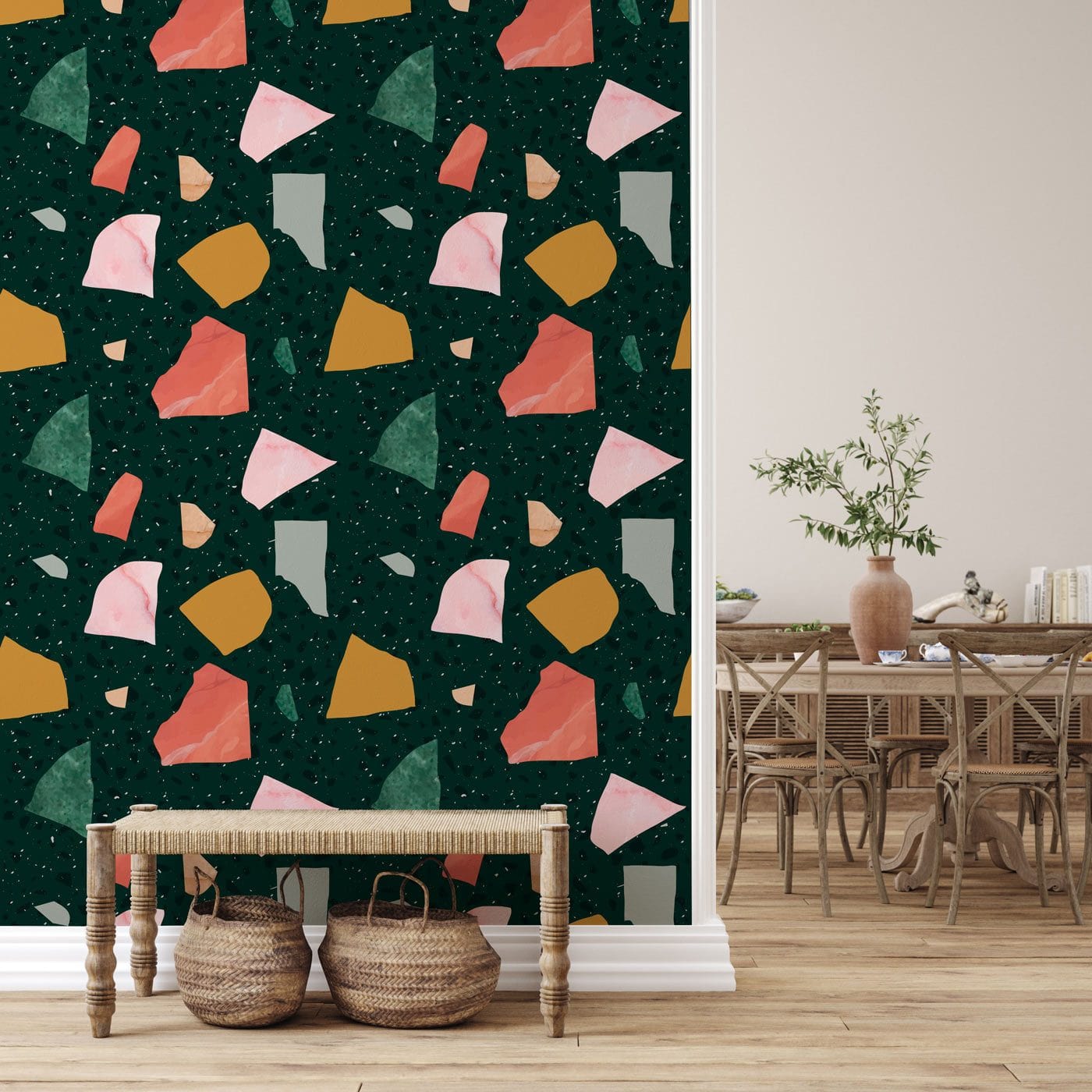 Obtenez le simple look des carreaux de terrazzo sur vos murs avec cette magnifique murale de papier peint. Ce papier peint en terrazzo coloré à tendance créera un effet apaisant et ajoutera une grâce simple à votre salon, chambre, salle à manger, salle de bain et chambre pour enfants. Murale murale idéale qui fonctionne parfaitement avec tous les styles de meubles. / p & gt;