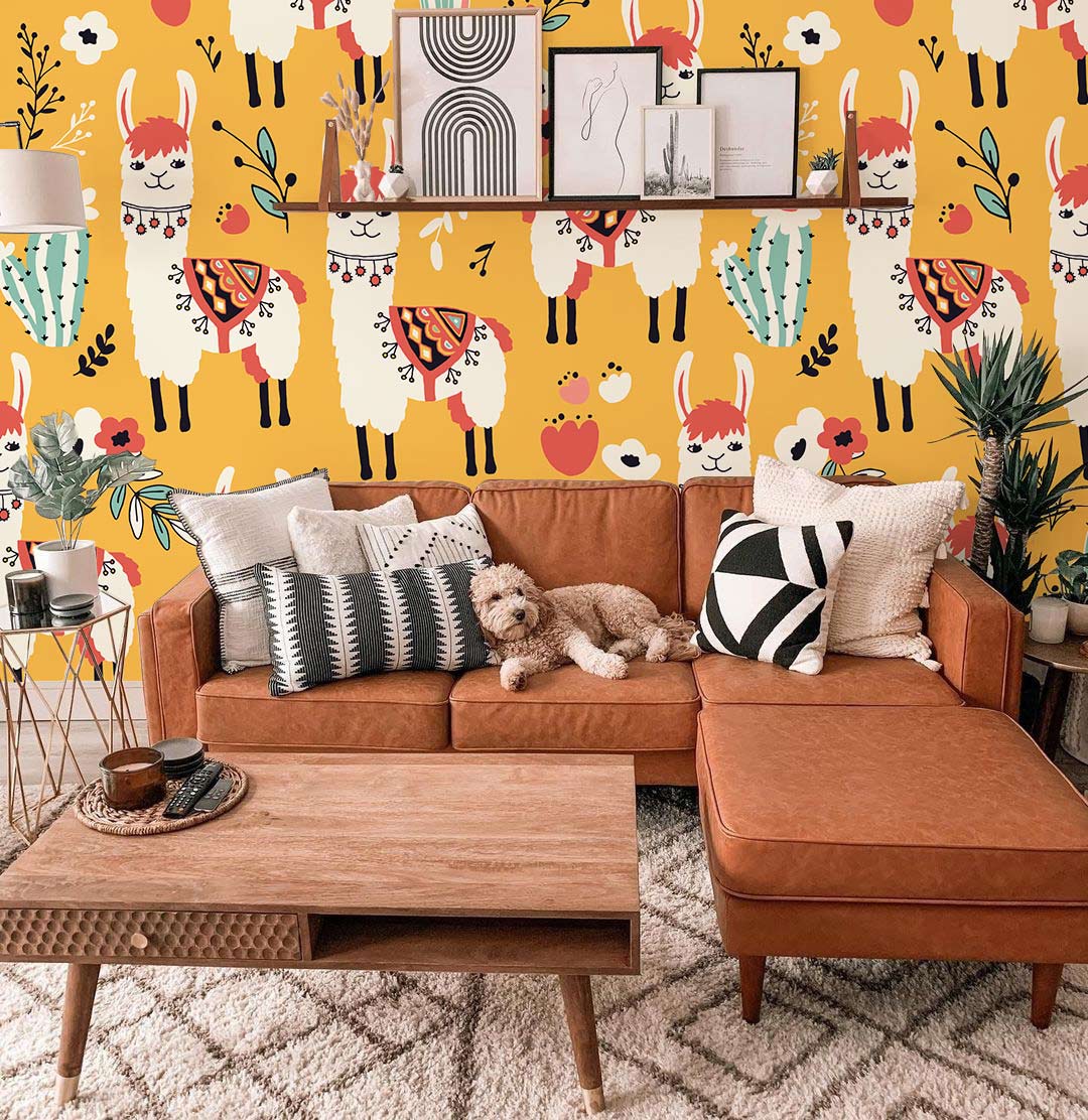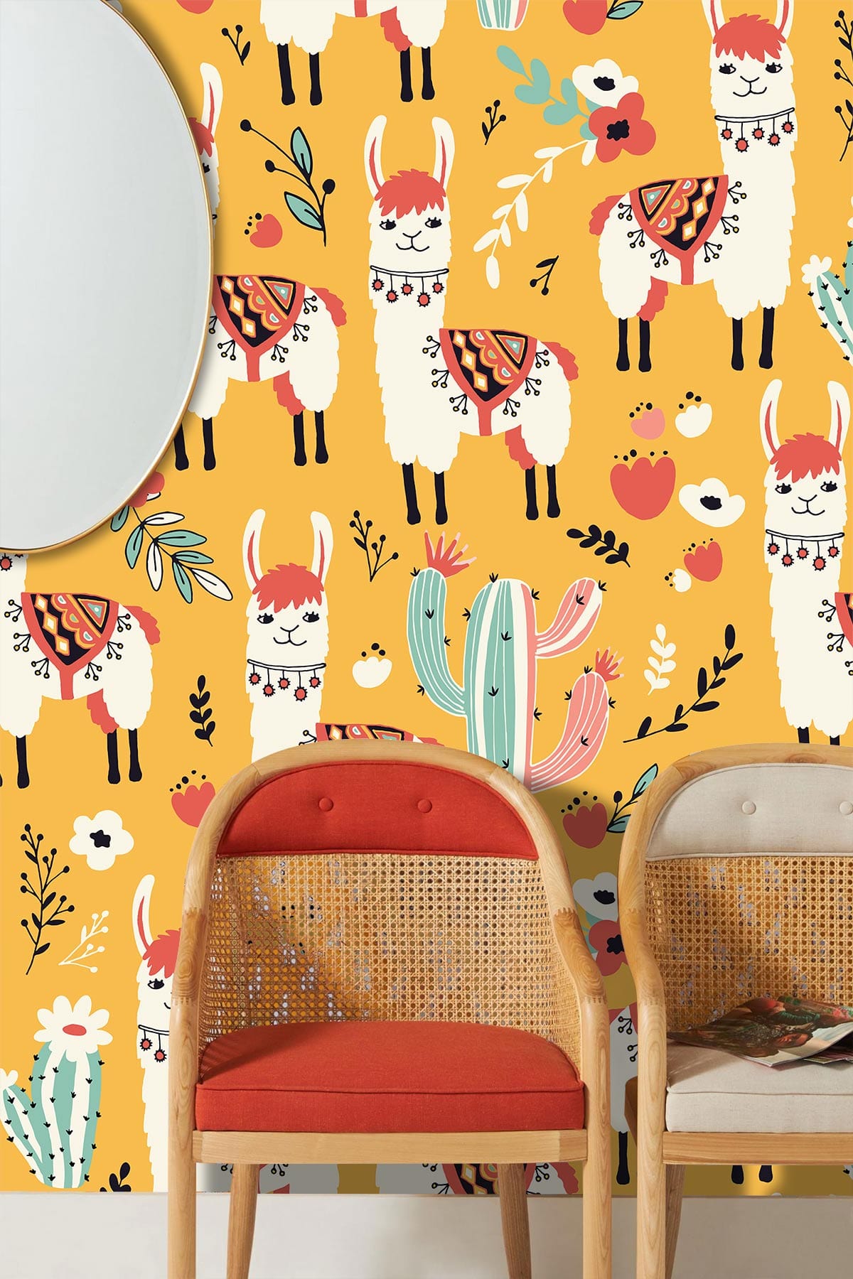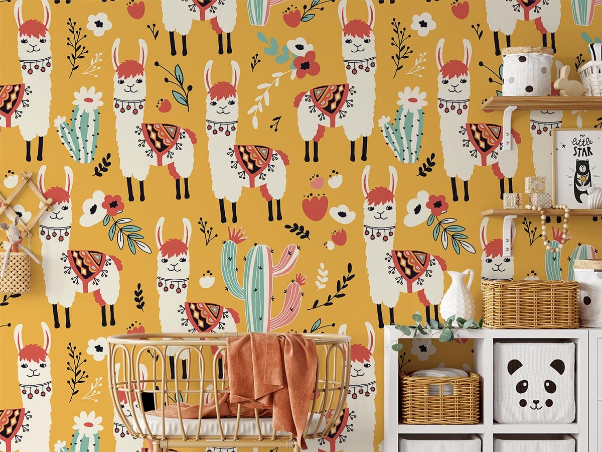 orner votre mur avec ce cactus drame jaune frais & ampus; Fond de papier peint alpaca. Ce beau Ever Wallpaper du désert et animal est plein de motifs et d'énergie. Créez un espace cool avec cette superbe fresque murale de vue du désert dans votre chambre, votre salon ou votre cuisine et profitez du bonheur qu'il vous apporte et de vos enfants.