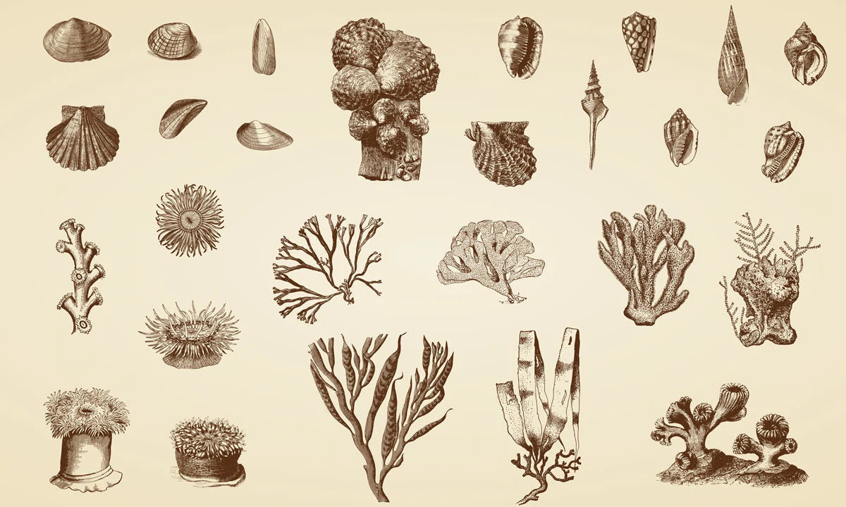 Si vous aimez les coquillages et les coraux, alors vous allez adorer ce papier peint mural ! Cette murale en papier peint mettant en vedette un nombre de belles créatures marines dessinées à la main telles que des coquillages, des coraux de conque et des tortues dans un style vintage, va sûrement réorganiser votre espace ! Superbe papier peint pour votre salon et votre chambre pour un look adorable et unique.