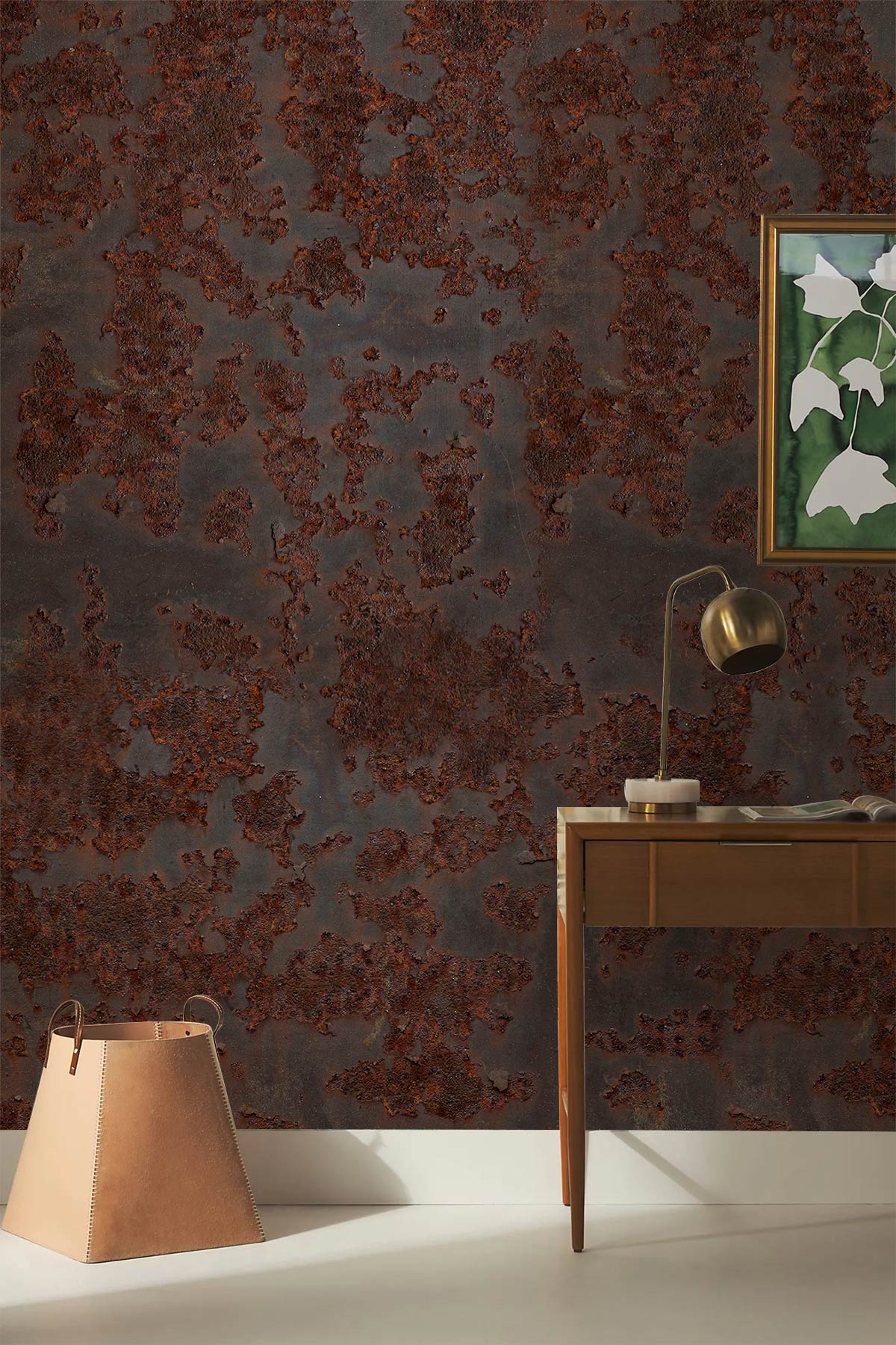 Une murale murale en béton rugueux avec de la rouille naturelle partout. Les transitions et les veines de couleur brunâtre foncé créent un moment de style dramatique mais complètement raffiné. Papier peint de style industriel idéal à utiliser dans votre chambre, salon et salle de bain.