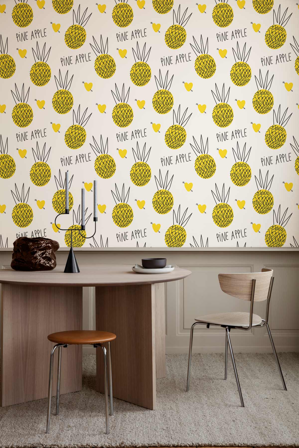 Changez le thème de votre établissement avec un papier peint mural très lumineux et rafraîchissant et rendez l'endroit si vivant et si frais. Avec le papier peint mural jaune ananas et le fond blanc crème, votre café aura l'air si énergique et plein de vie. Vous pouvez également choisir ce papier peint mural pour rénover votre chambre à coucher avec un design très moderne qui rendra votre chambre si heureuse et pleine de positivité. La palette du design est si légère et fera paraître l'endroit plus large. Utilisez des teintes claires dans les décorations pour garder un style simple et chic.