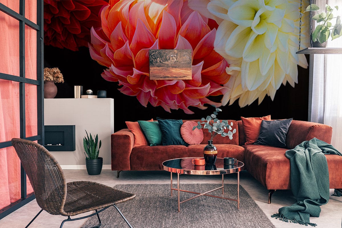 Notre papier peint mural Dahlias Soak est une superbe peinture murale représentant des fleurs de dahlia dans des teintes vibrantes de rose et de jaune sur un fond sombre et profond. Cette peinture murale est un design frais de fleurs d'été qui apportera un sentiment instantané de chaleur et de charme à votre maison, votre bureau ou votre chambre d'étudiant. Le motif de ce papier peint sera fantastique sur un mur d'accent ou constituera un point focal accrocheur dans une zone moins frappante de la pièce.