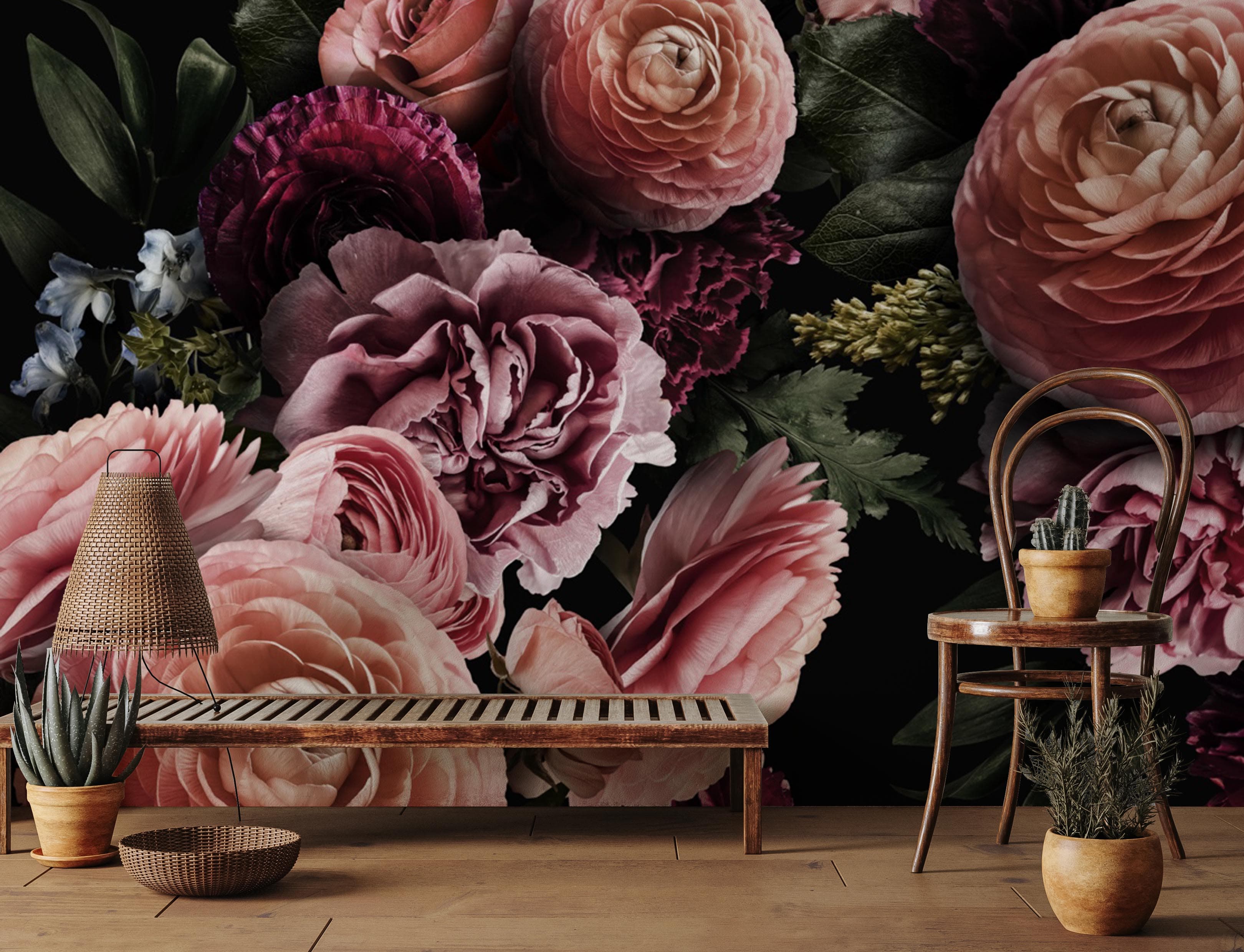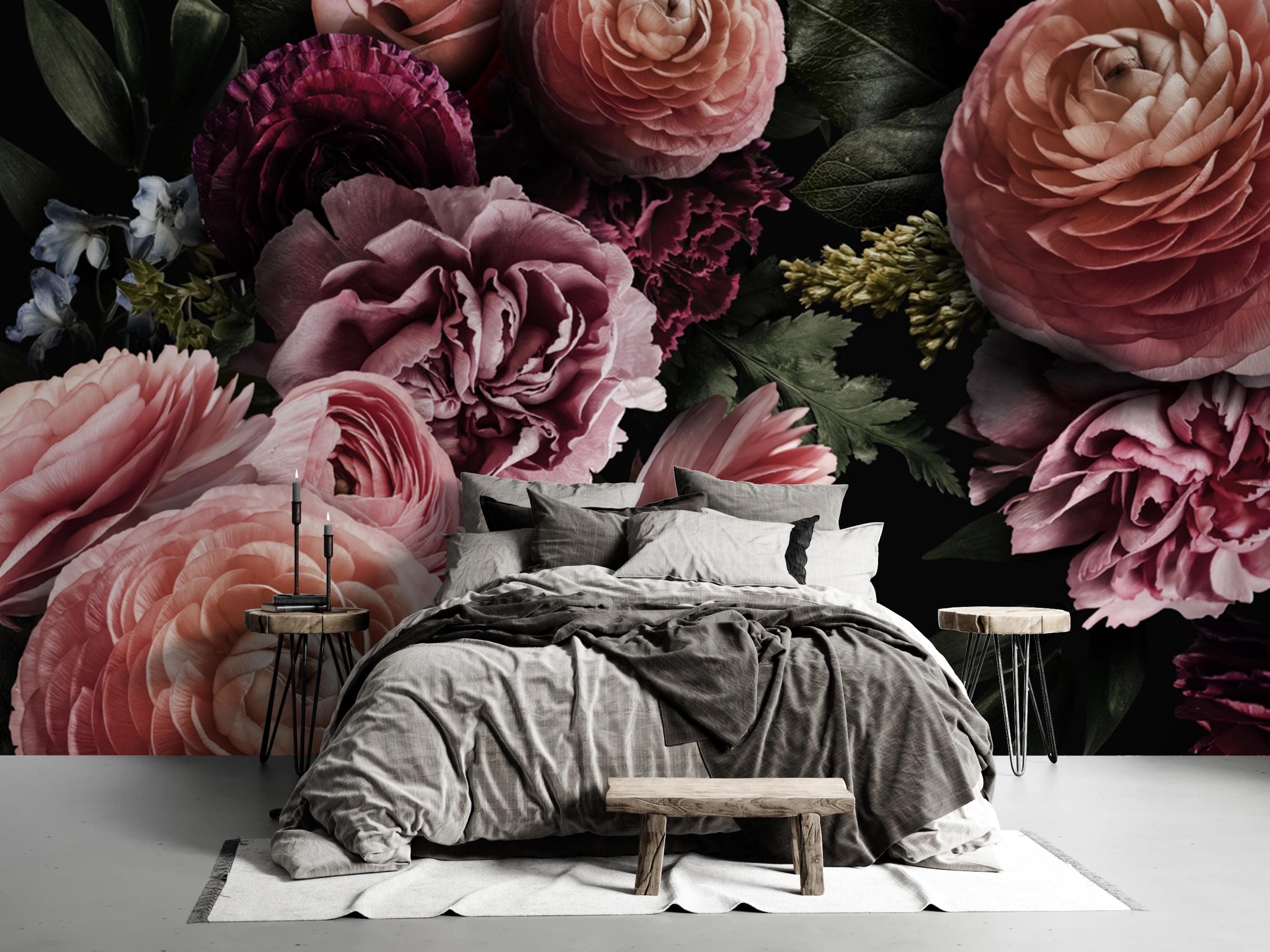 Créez un espace élégant dans votre maison avec notre papier peint fleuri. Ce magnifique bouquet de fleurs aux tons foncés ajoutera sûrement une touche de calme et d'élégance à votre intérieur. Il aura fière allure dans votre chambre, votre salle à manger et votre couloir. Cette décoration murale s'accordera également parfaitement avec vos meubles et toutes autres décorations d'intérieur.