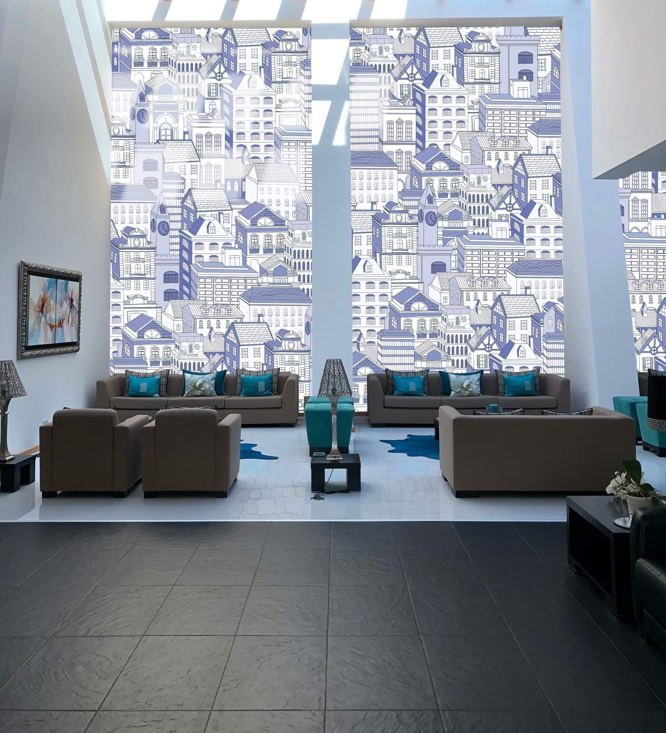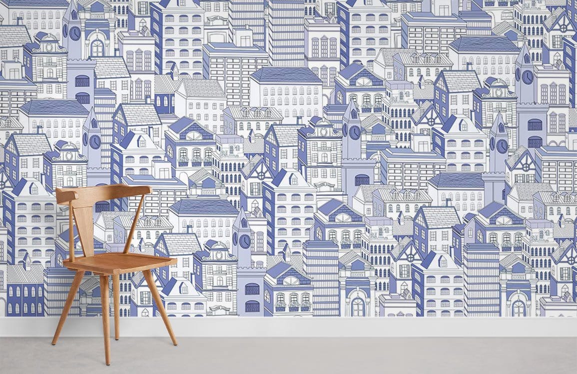 Apportez une ambiance spectaculaire à votre espace avec cette ligne de dessin de ligne et des bâtiments portrait du papier peint mural. L'œuvre créée en bleu & amp; White apporte la simplicité et le lieu moderne au design. Utilisez-le comme mur de caractéristiques dans votre chambre avec des meubles de votre choix car les décors blancs sont parfaits à s'associer à toute la décoration de la maison.