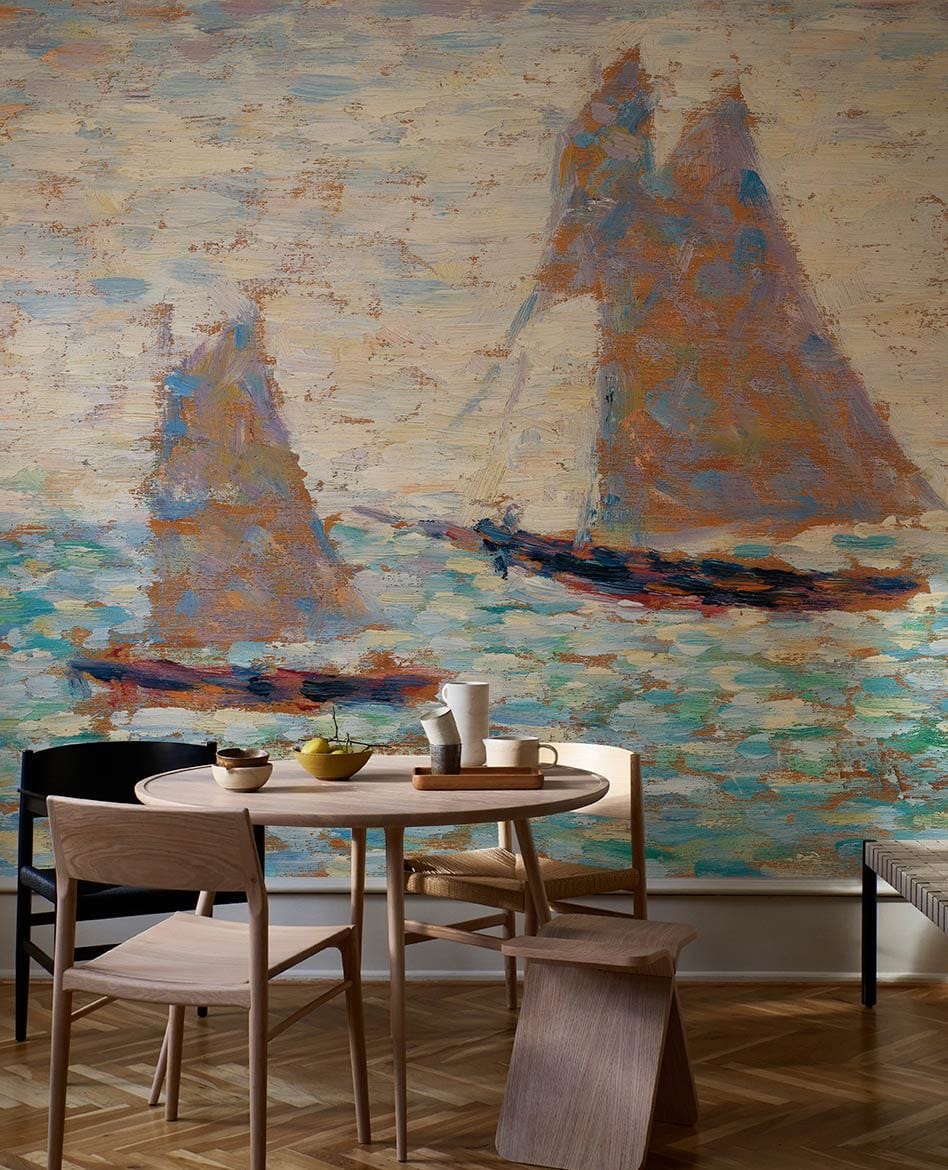 Vous aimez la voile. Vous aimez sortir sur votre bateau dès que vous le pouvez. Et si vous pouviez apporter ce même sentiment dans votre maison, même lorsque vous n'êtes pas sur l'eau ? C'est désormais possible avec notre Papier peint panoramique Deux voiliers ! Cette magnifique pièce de décoration murale capture une scène de rêve de deux voiliers glissant sur la surface d'un océan étincelant. Les voiliers flottent sereinement sur une mer bleu marine sous un ciel nuageux dans les tons de gris, bleu et blanc. Grâce à ce papier peint mural, vous pouvez vous entourer d'images du paysage marin et du ciel, sans avoir à franchir le seuil de votre porte.