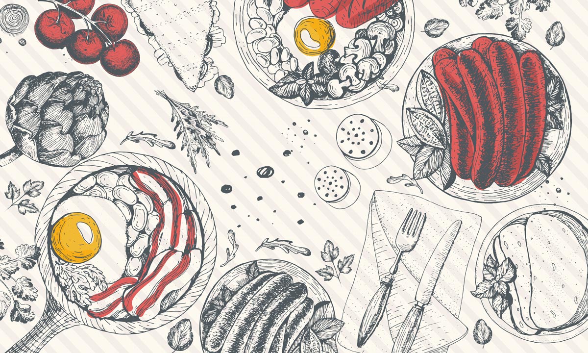 Il est temps de donner un nouveau look à votre salle à manger ou votre cuisine ! Cette jolie peinture murale de papier peint de dîner dessiné à la main sous un fond de rayures pastel est une peinture murale parfaite pour transformer un espace ennuyeux en quelque chose d'unique et accrocheur. Pourquoi ne pas l'essayer et l'associer à des décorations d'intérieur de meubles modernes.