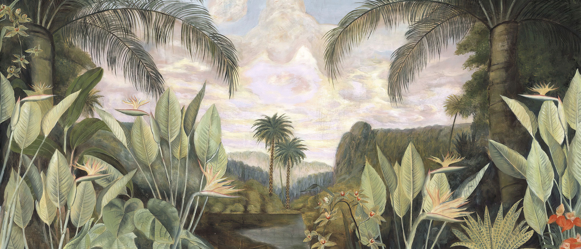 Obtenez un look tropical accrocheur dans votre espace avec ce papier peint mural attrayant. Les palmiers, les bananiers en contraste avec le ciel rose pastel rêveur ajoutent une touche douce et paisible au design qui donne vie à vos intérieurs. Papier peint idéal pour votre salon, votre salle à manger et votre couloir.