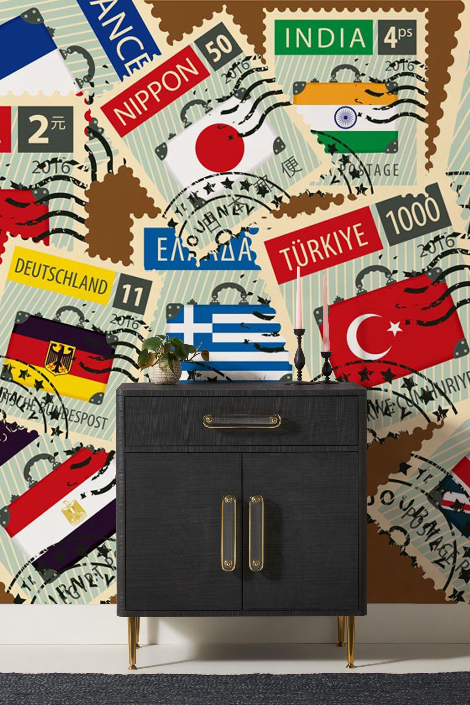 Si vous êtes un voyageur ou que vous aimez collectionner des timbres, alors vous allez adorer ce papier peint mural ! Ce papier peint mural est conçu avec un nombre de timbres de drapeau national dans des tons colorés, ce qui apportera sûrement de l'énergie et relookera votre espace ! Excellent papier peint pour votre salon et votre chambre pour un look cool et unique.