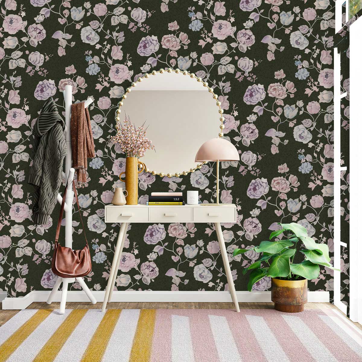 Embellissez votre maison avec cette peinture murale de motif de fleurs répétées. Ce design en noir noir avec des fleurs roses rampant sur vos murs ajoutera instantanément plus de fraîcheur à vos chambres. Associez-le avec des meubles traditionnels et des décors de maison pour un look charmant à vos intérieurs.