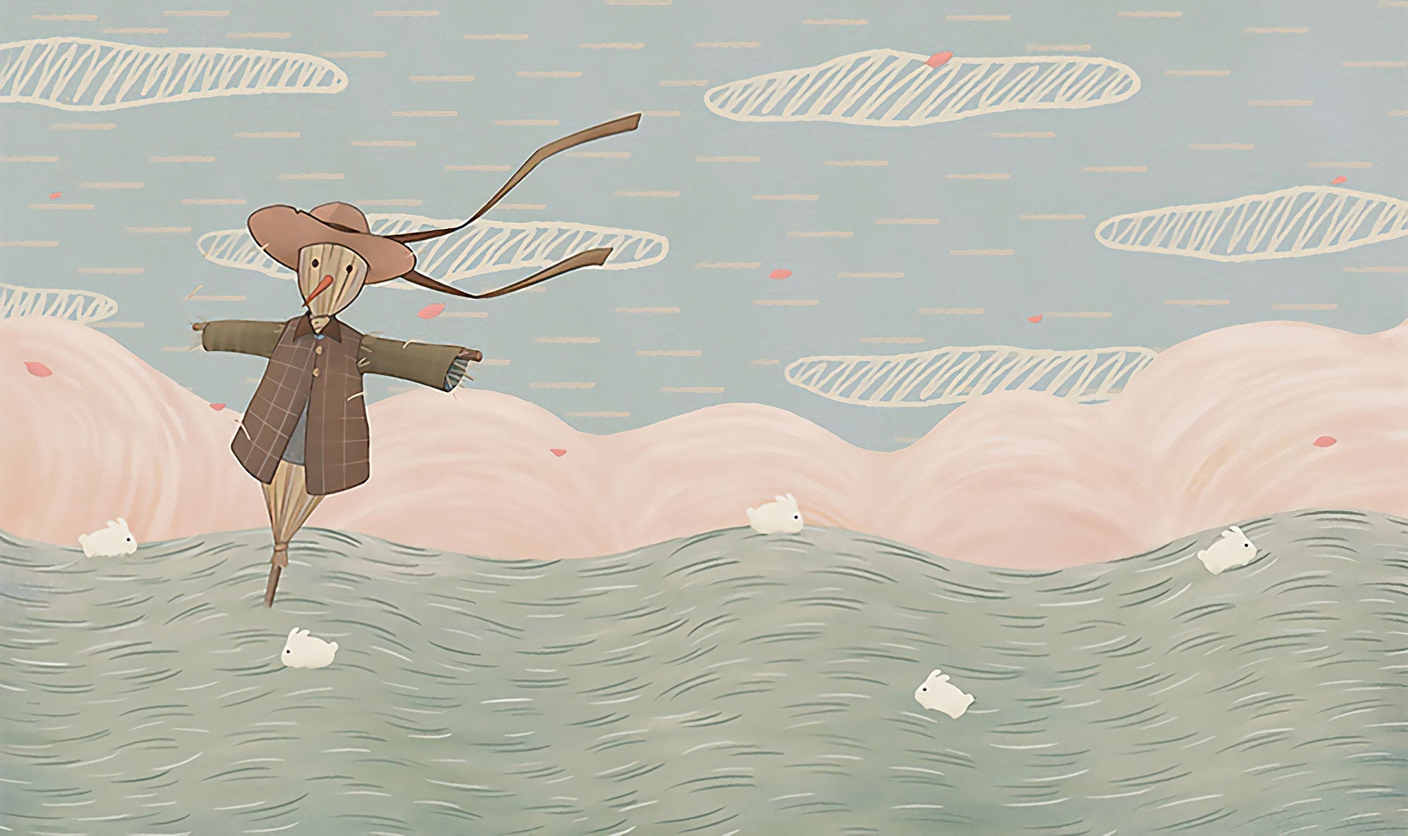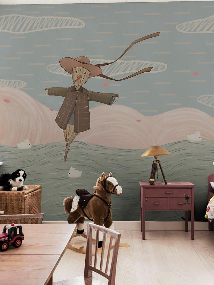 Transformez votre mur fade en quelque chose d'adorable et de charmant avec ce papier peint mural épouvantail coloré dans le champ. Le champ vert pastel doux, la montagne rose et les motifs de ciel bleu donnent une sensation terreuse au look. La nature animée du design lui donne une bouffée de fraîcheur et vous permet de jouer avec la murale dans une variété d'espaces. Décoration murale idéale dans la chambre de votre enfant.