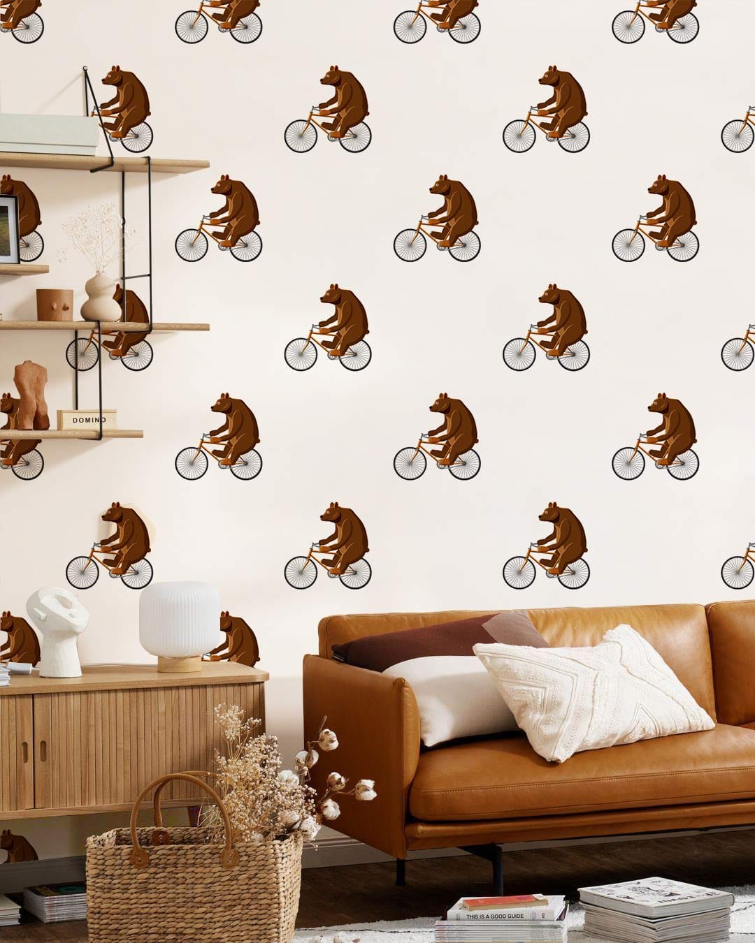Préparez-vous pour une ambiance énergique autour de vous avec ce drôle de vélo débarrassant ours Ever Wallpaper qui ajoutera un très beau thème à votre kid's room. Le fond avec le blanc cassé et le petit motif de débarrasseront la pièce plus grande. Style ce design avec une décoration blanche ou un ameublement en bois brunâtre pour un joli contraste et un effet chaud. Ajoutez des tapis beige et des rideaux blancs pour un thème plus lumineux à la pièce qui rendra cela beaucoup relaxant et vos enfants seront heureux de leur petit monde.