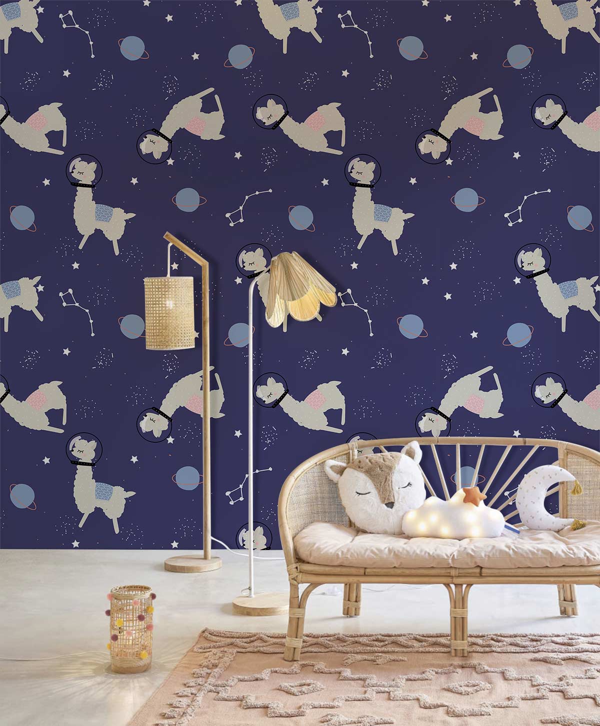 Notre charmant alpacas < / A> se répand-ils dans l'espace. Ces adorables alpagas avec cette jolie murale feront votre La salle des enfants se sent tellement amusante et a l'air si cool. La conception des alpagas pour bébé avec les planètes plongeant dans le ciel avec cette nuance sombre de bleu marine donnera un très bon contraste avec des décorations et un lit blancs légers. Donnez à vos enfants une nouvelle pièce ordinaire et laissez-les se sentir attachés et aimer leur petite zone privée et le sentir plus amusant et sécurisé.