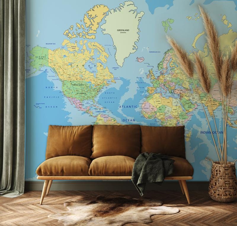 Connaître ce monde de A à Z avec ce papier peint carte murale sur mesure. Cette carte du monde tendance est un fond fantastique pour vos pièces. Tous les pays et régions ont été clairement détaillés sur cette carte. Convient à tous vos bureaux à domicile, chambres et couloirs.