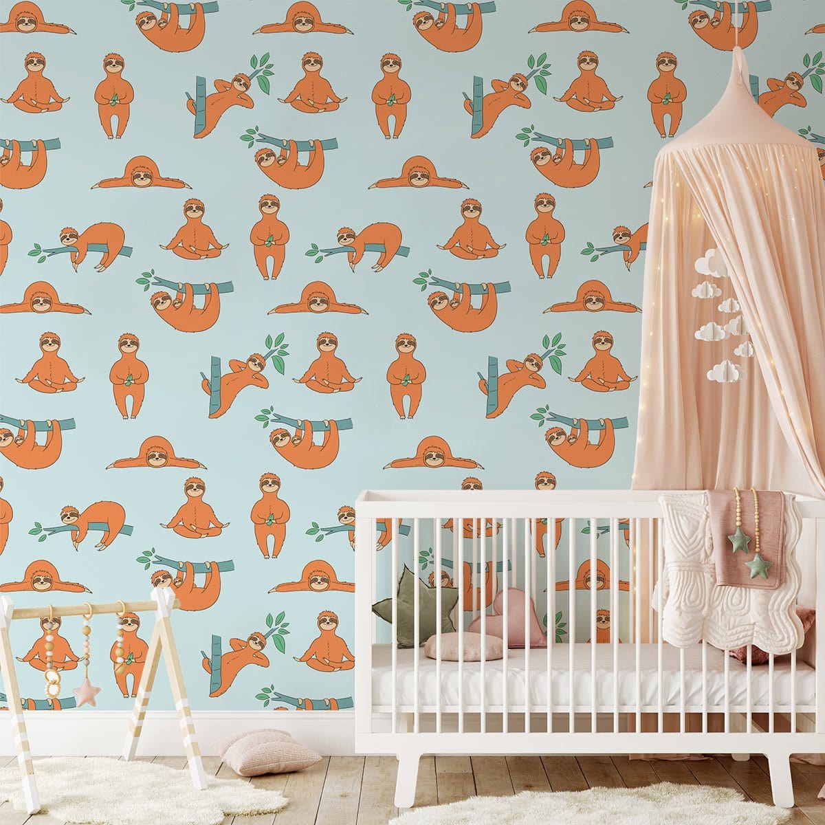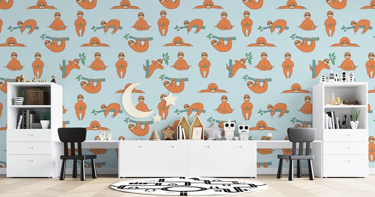 Vos enfants vont adorer cette jolie pelle pelleuse pelleté de papier peint! Cette murale murale avec de jolies paresseux faisant des exercices et étirant leur corps sous un fond bleu pastel convient à toute la salle des enfants et la crèche pour bébé. Placez cette peinture murale de paresse coquine à votre mur et profitez du bonheur et de la joie qu'il vous apporte, vous et vos enfants.