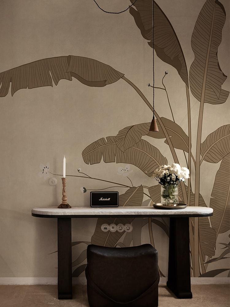 Obtenez un look tropical instantané à vos intérieurs avec cette jolie peinture murale en papier peint. Dans des tons de bruns terreux et de verts d'algues, il donne un aspect vintage à l'espace qui orne ce design. Parfait pour une utilisation dans le salon comme mur caractéristique, il est à la hauteur de son apparence saisissante. Associez-le à des meubles traditionnels pour un look charmant.